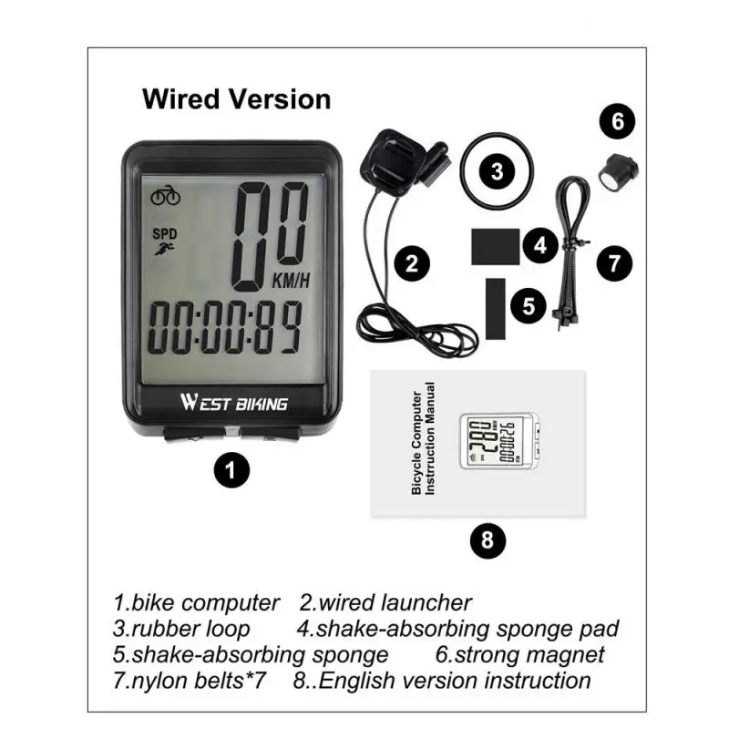WEST BIKING водонепроницаемый велосипедный компьютер, беспроводной и проводной, для горного велосипеда, телефон, секундомер, спидометр, светодиодные цифровые часы