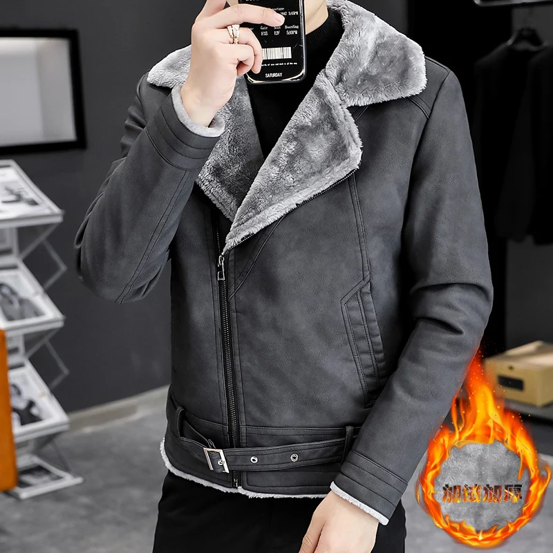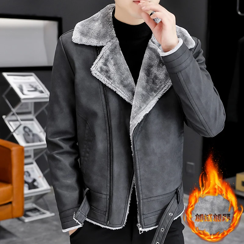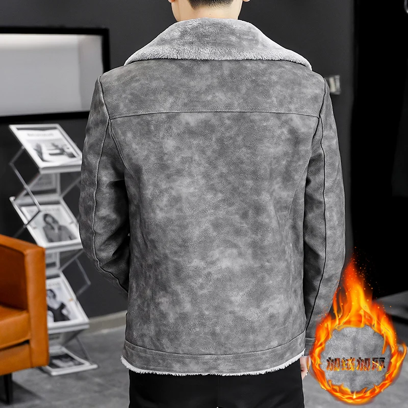 Новинка Осень-зима мужское плюшевое толстое пальто из искусственной кожи Повседневная замшевая Мужская теплая мотоциклетная куртка из искусственной кожи Высококачественная Мужская одежда