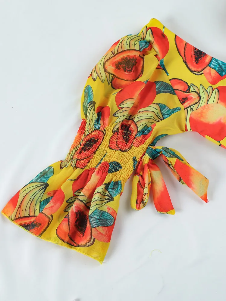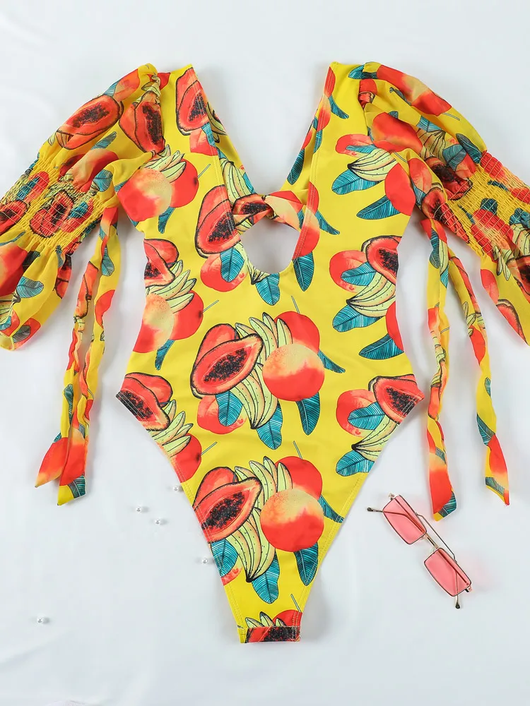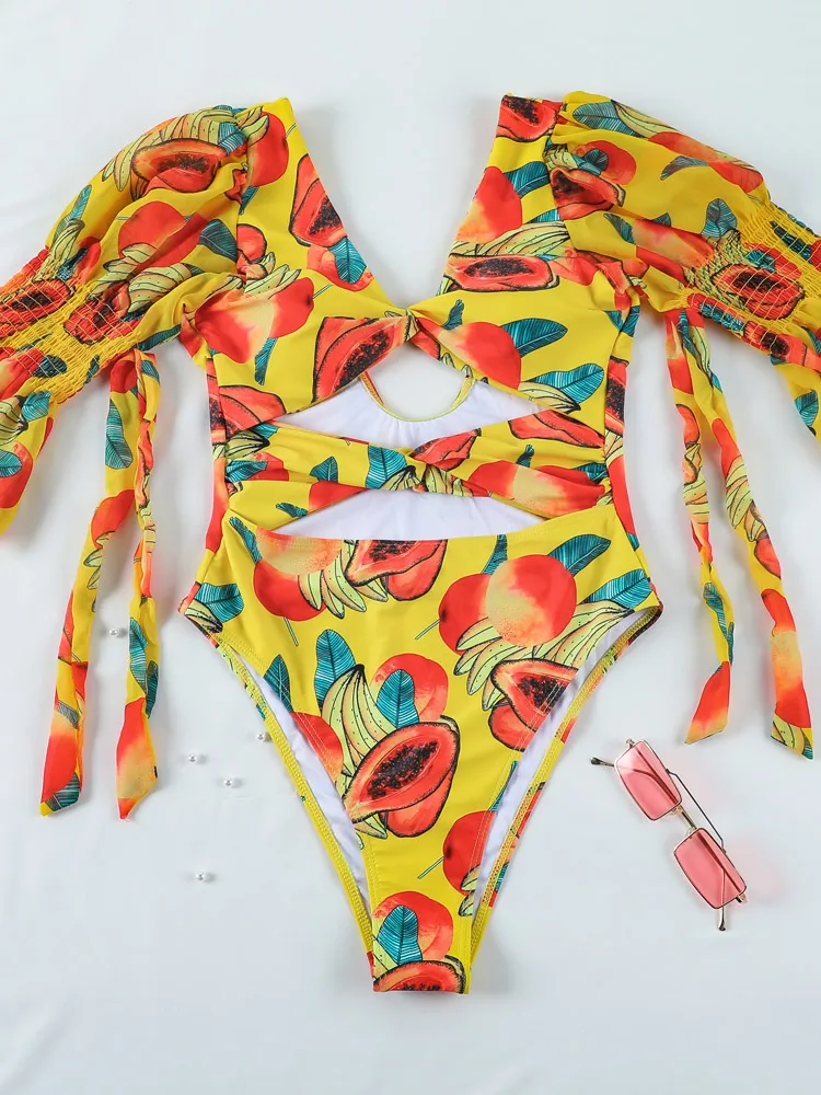 Слитный купальник с принтом, женский купальный костюм с длинными ру...