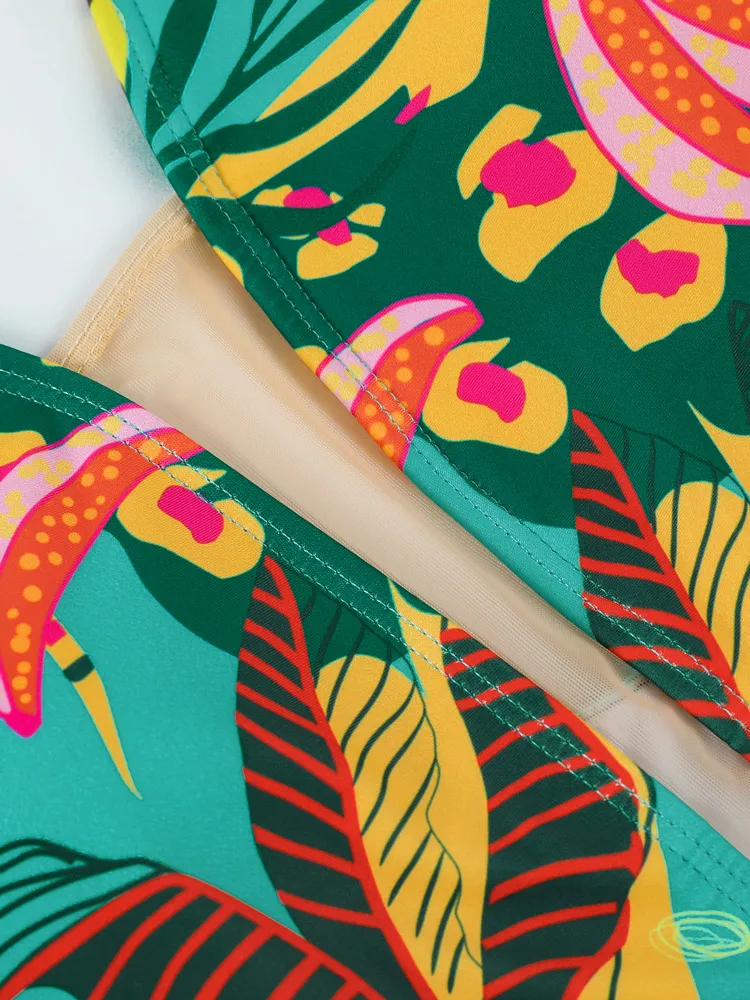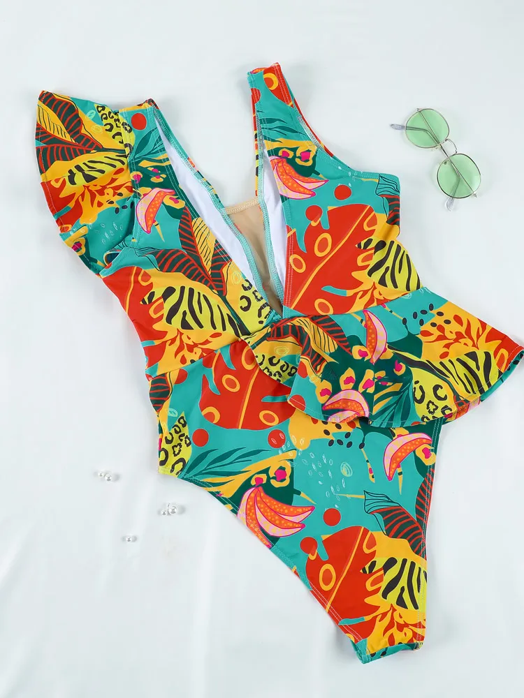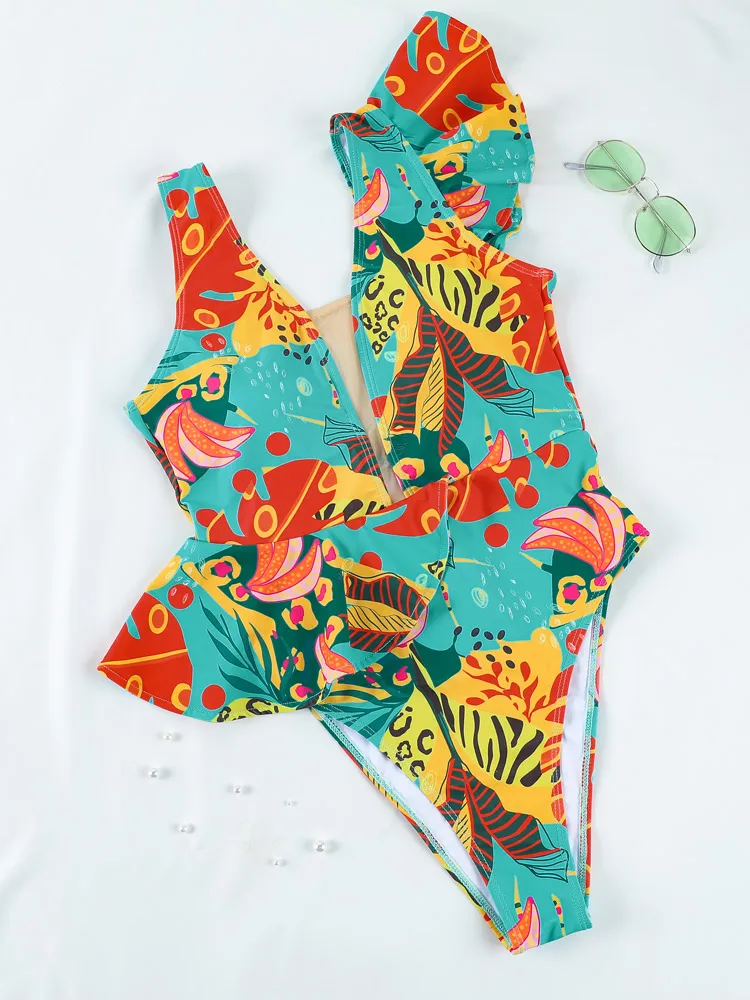 Слитный купальник с вырезами, купальник с оборками, Женский пикантн...