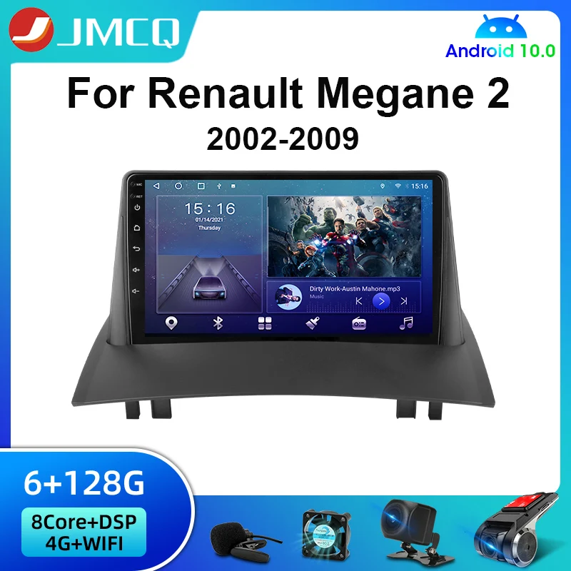 Автомагнитола JMCQ для Renault Megane 2 2002-2009, Android 10,0, 4 Гб + 32 ГБ icon star icon star icon star icon star icon star