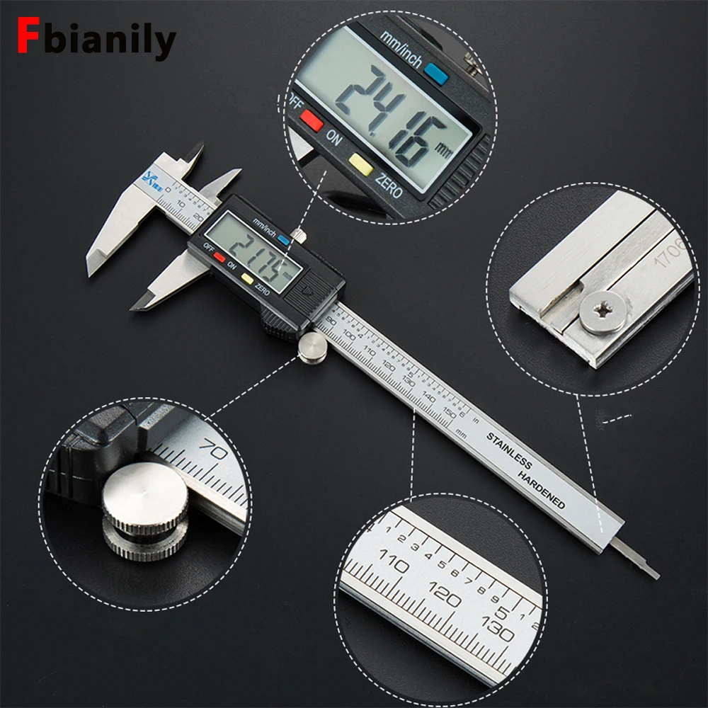 Цифровой штангенциркуль, 6 дюймов, Электронный штангенциркуль с нониусом, 100 мм, цифровой микрометр, линейка, измерительный инструмент 150 мм, 0,1 мм