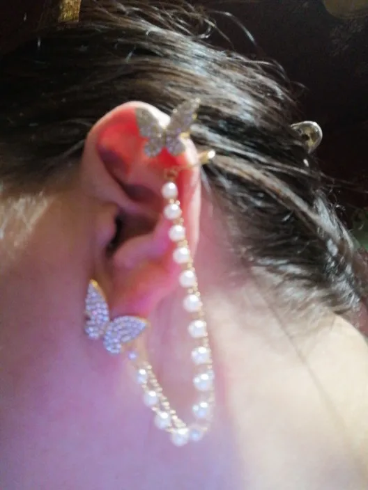 Новые модные асимметричные серьги-капельки стразы в форме бабочки для женщин серьги-цепочки с имитацией жемчуга очаровательные ювелирные изделия в подарок