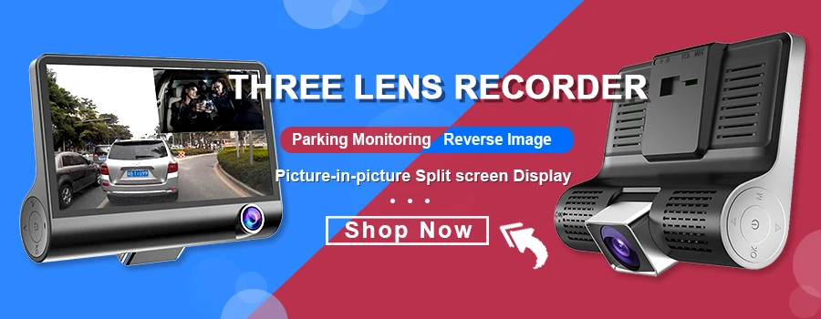 Видеорегистратор автомобильный, 4 дюйма, Full HD 1080P, 3 объектива, 170
