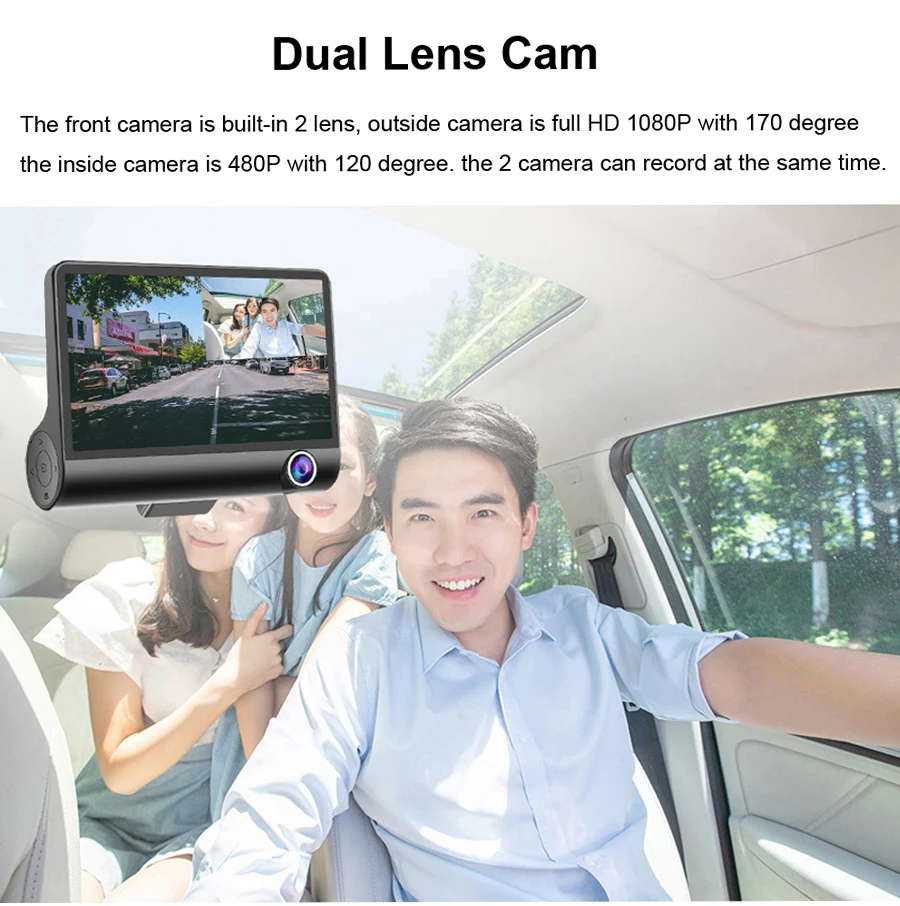 Автомобильный видеорегистратор DashCam, 4 дюйма, Full HD 1080P, 3 объектива, Автомобильный видеорегистратор, 170 °, g-сенсор, мониторинг парковки, камера ночного видения