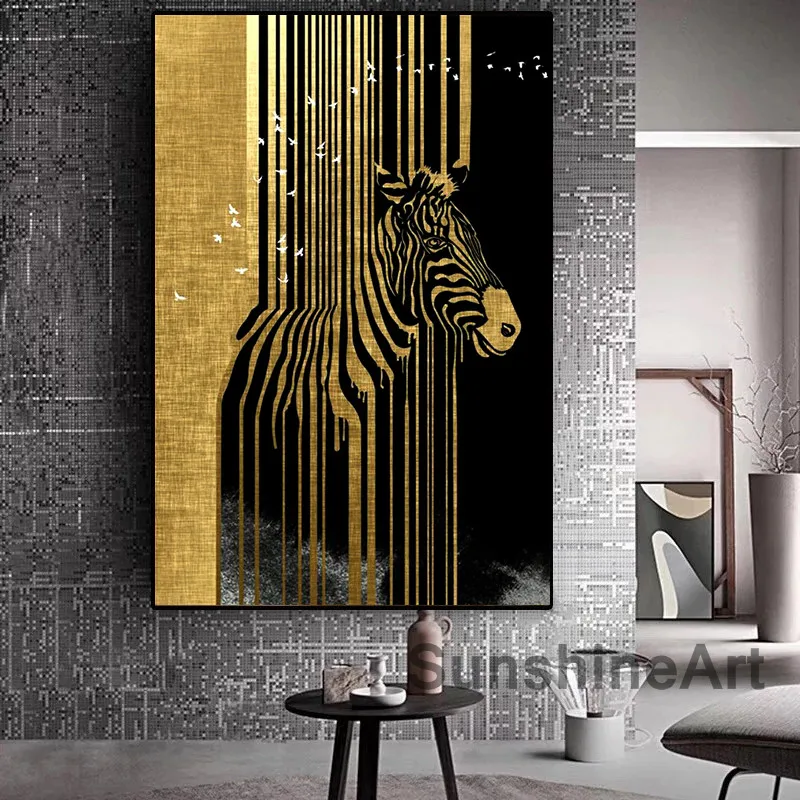 Абстрактные Художественные настенные украшения для гостиной, Золотая Зебра, Скандинавский современный стиль, холст, плакаты и принты, настенные художественные картинки для домашнего декора