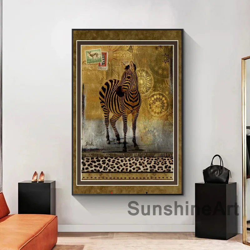 Абстрактная фотография, Золотая Зебра в гостиной, современные скандинавские холщовые постеры и принты, настенные художественные картины для домашнего декора