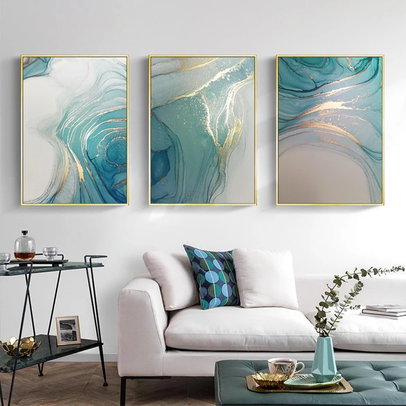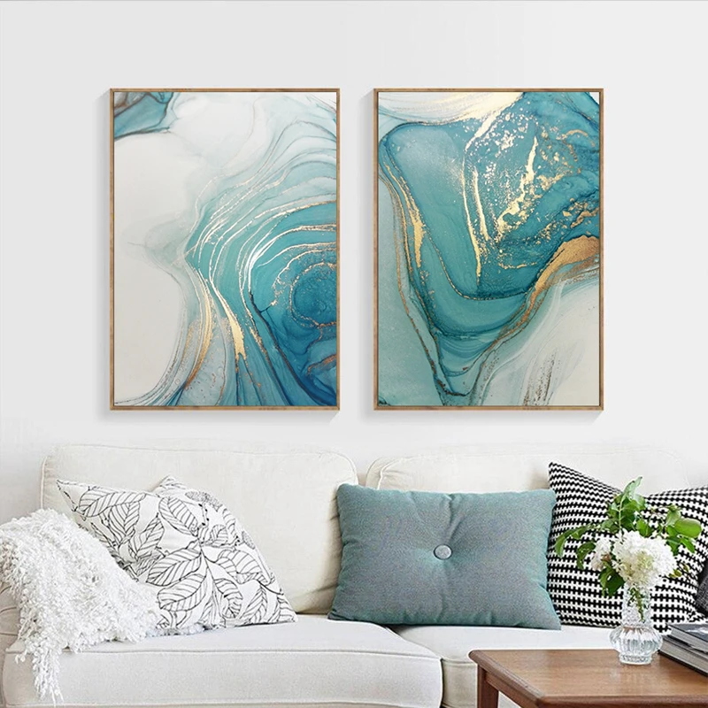 Современная Роскошная золотая бирюза жидкая фотография настенная Картина на холсте для гостиной домашний декор
