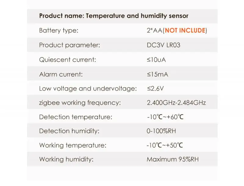 3.Низкое энергопотребление: Разработан с функцией напоминания о низком напряжении в приложении для источника питания в режиме реального времени для вашего датчика. Батарея работает с длительным сроком службы батареи.(Аккумулятор не входит в комплект)