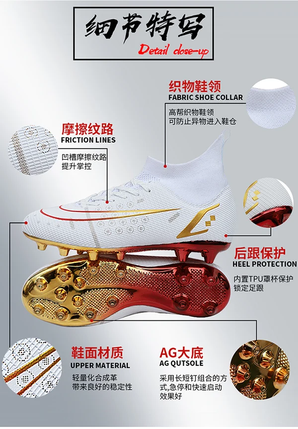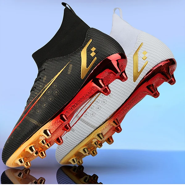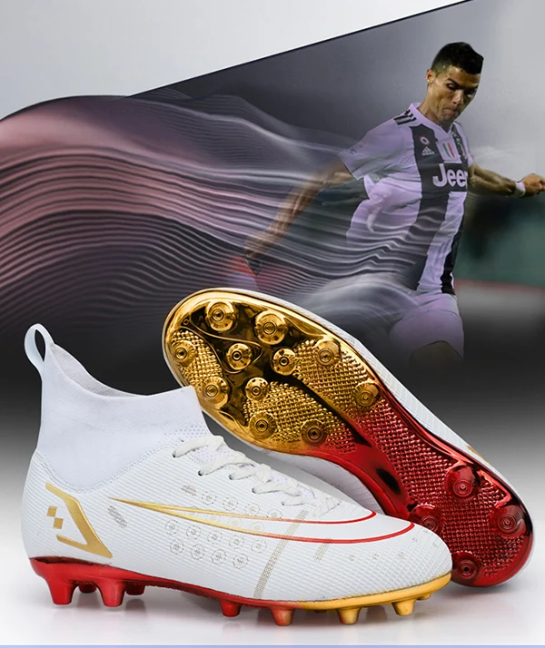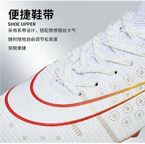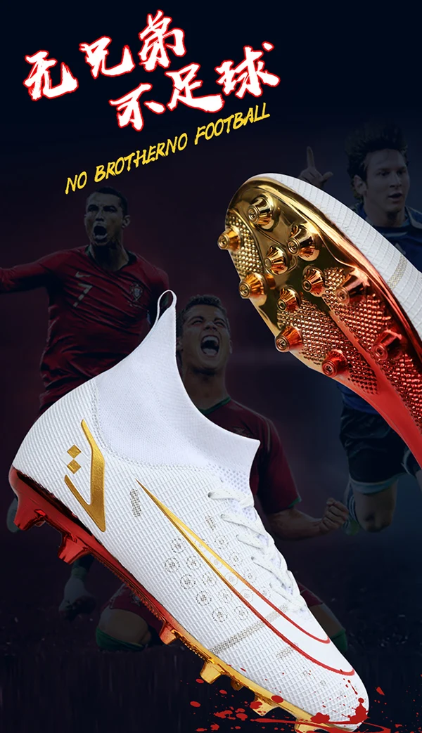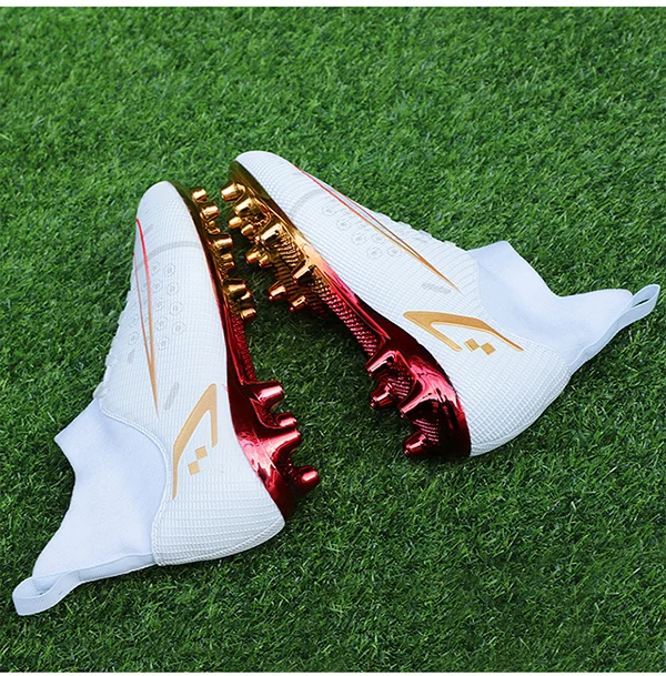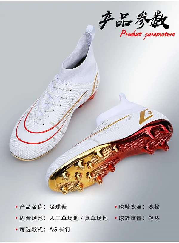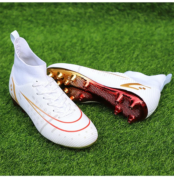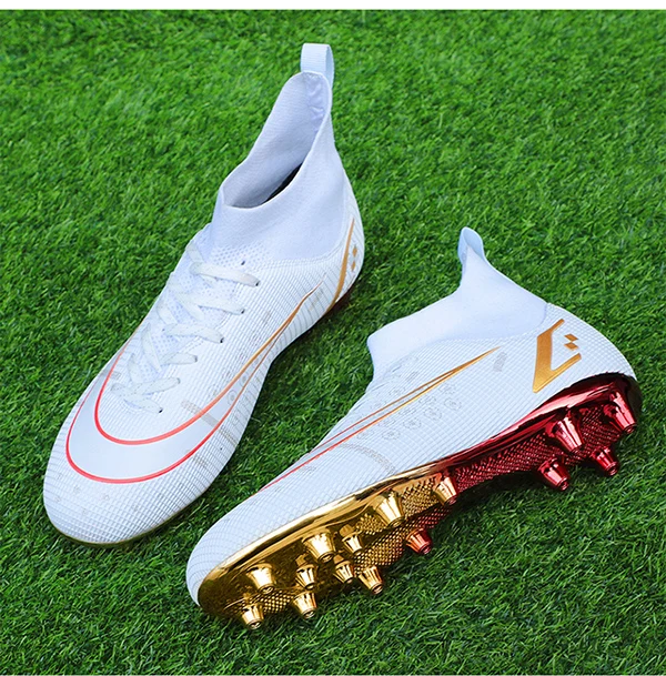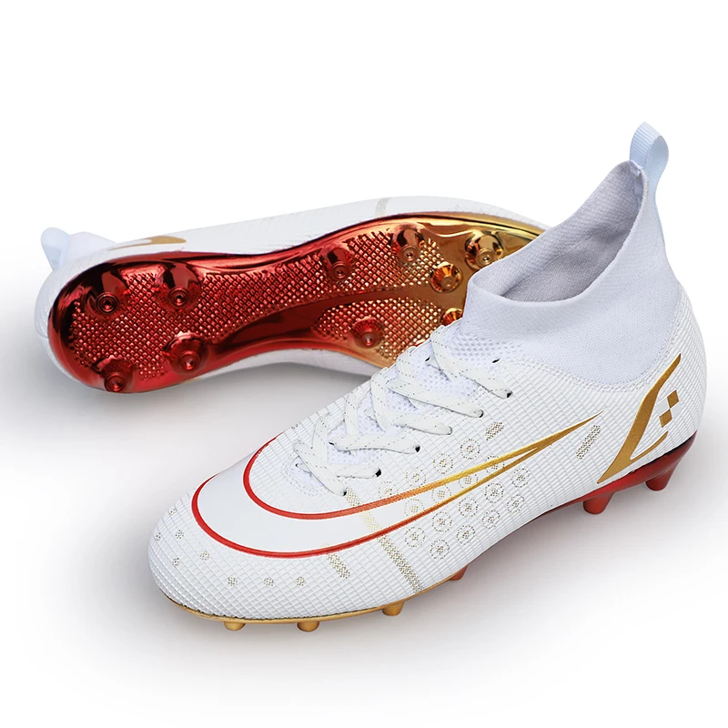2022 Новое поступление, горячая распродажа мужские футбольные шипы с высокой лодыжкой, футбольная обувь с длинными шипами для помещений FGTF, детские белые футбольные бутсы для мальчиков