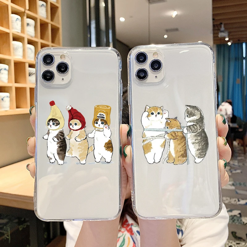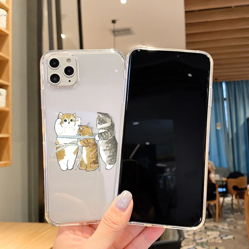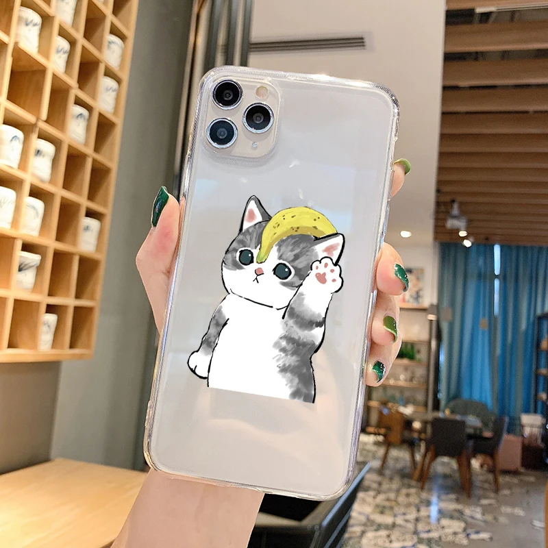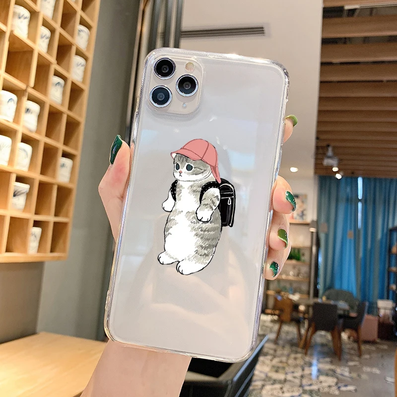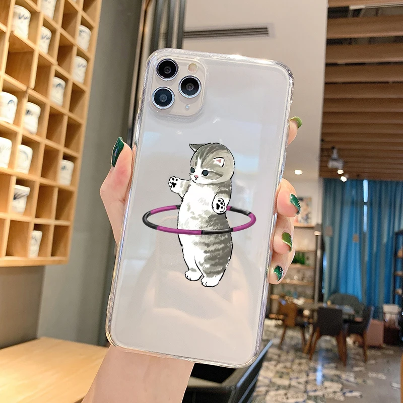 Силиконовый чехол с изображением милого кота для iPhone 11, прозрач...