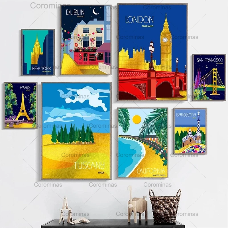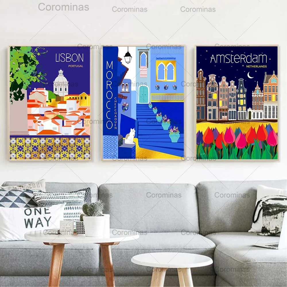 Марокканский постер путешествия город аниме известный Лондон Париж Пейзаж Картина на холсте принты настенные картины для домашнего интерьера Декор
