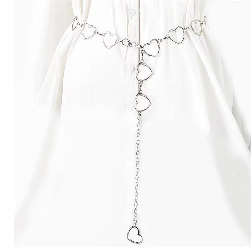 Женский пояс в стиле хип-хоп, Классический ажурный пояс с цепочкой и сердечками, 100 см, 2021