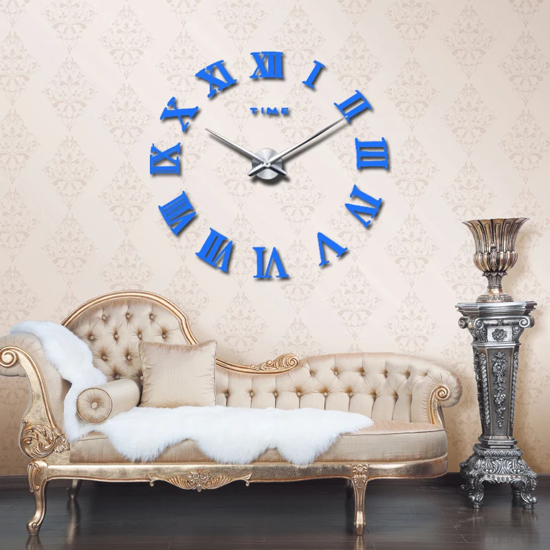 Настенные кварцевые часы с римскими цифрами, большие часы с зеркальными стикерами для самостоятельного украшения дома и гостиной