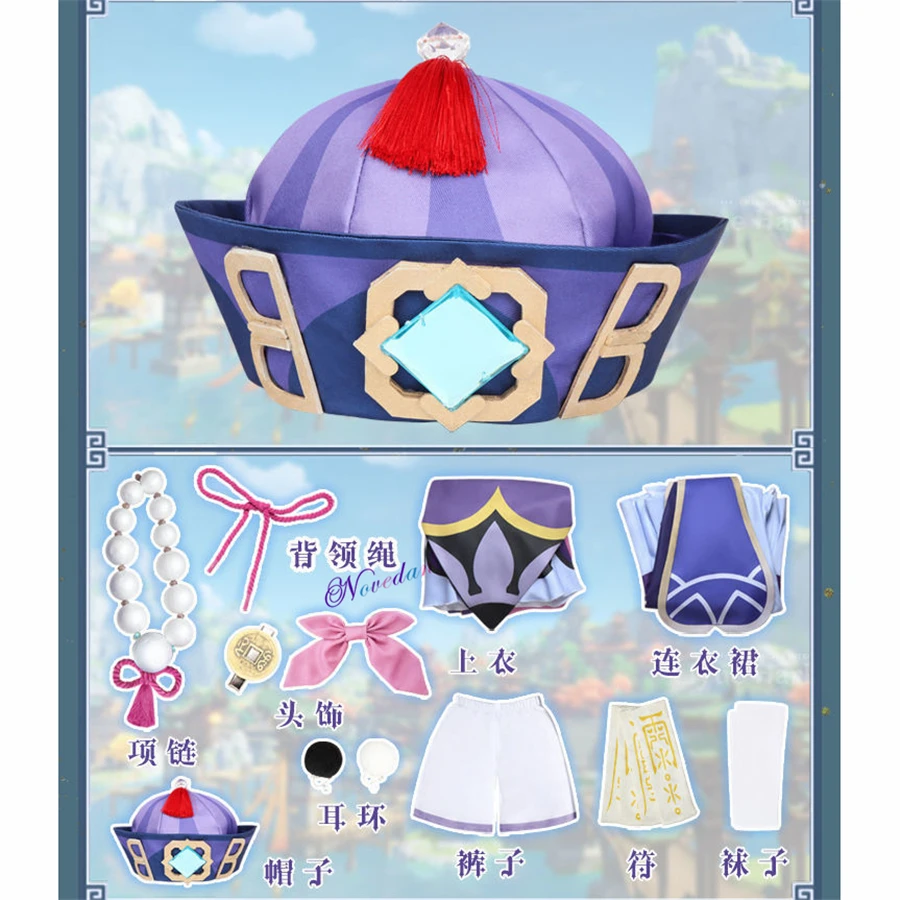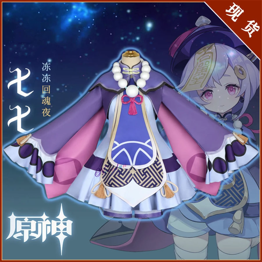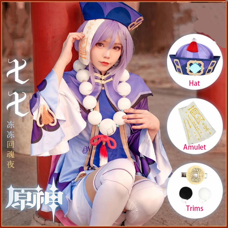 Костюм для косплея по мотивам игры Genshin Impact Project Qiqi, костюм для девочек с зомби, парик, кепка, аксессуары для аниме, костюм на Хэллоуин и Рождество