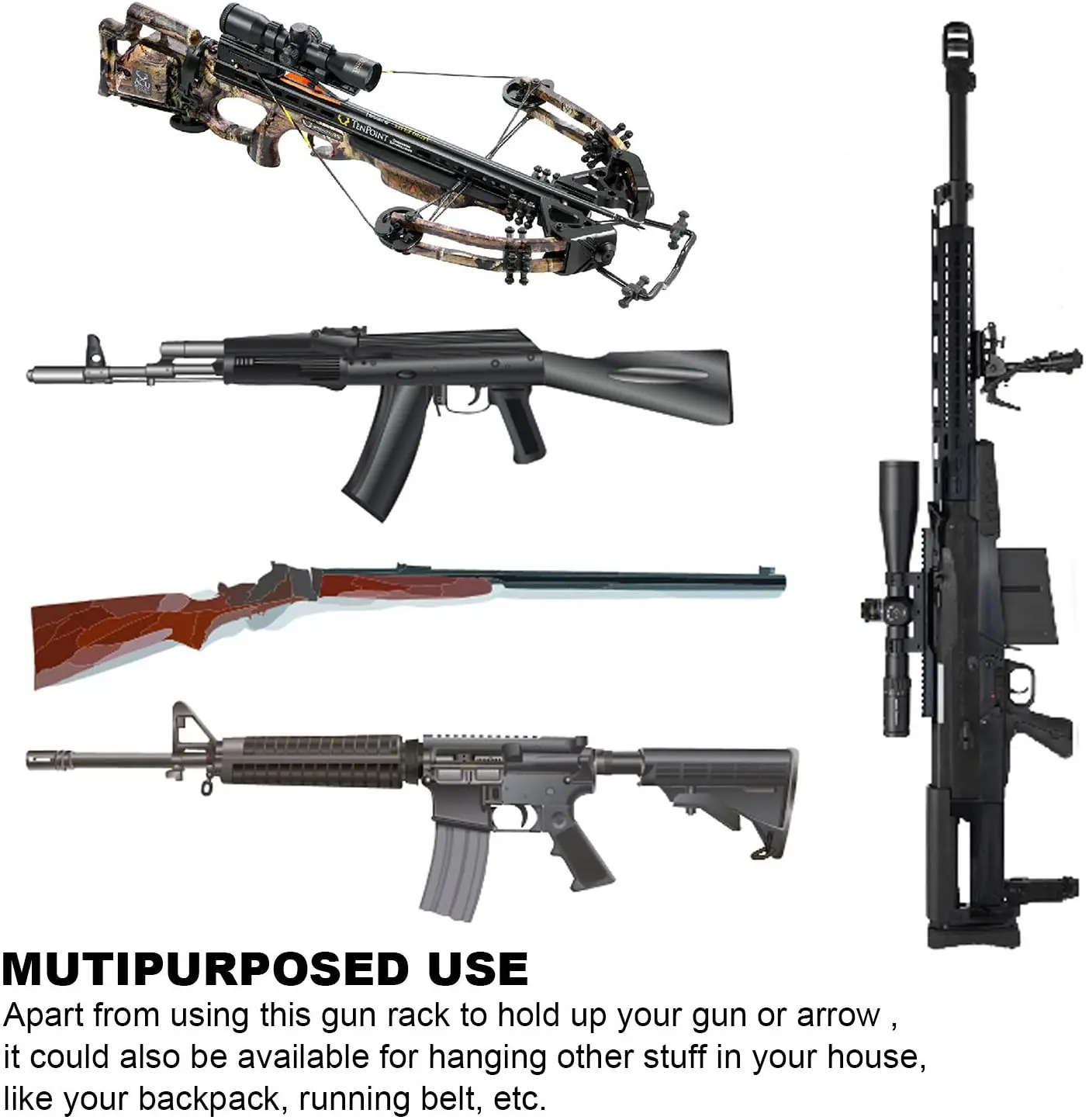Стеллаж для хранения винтовок и дробовиков, крючки для настенного крепления, вешалки для любых винтовок, дробовиков, лука с мягкой подкладкой и тяжелым