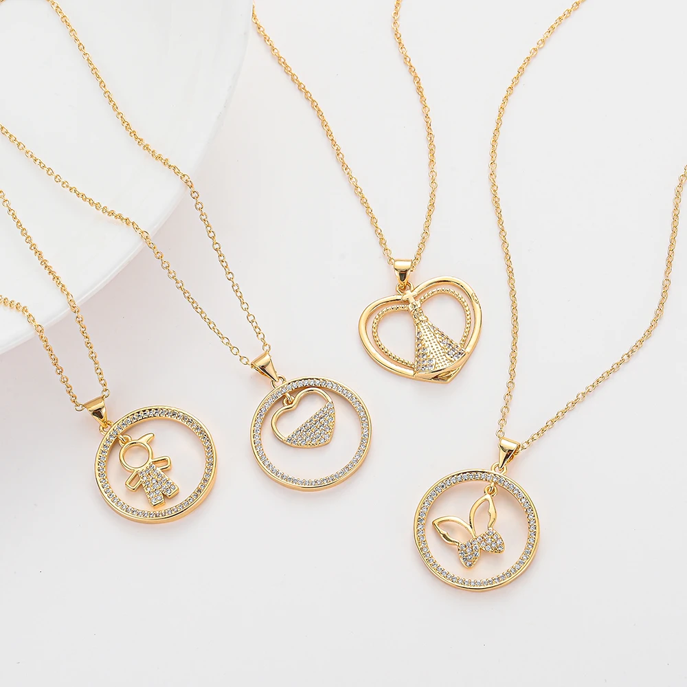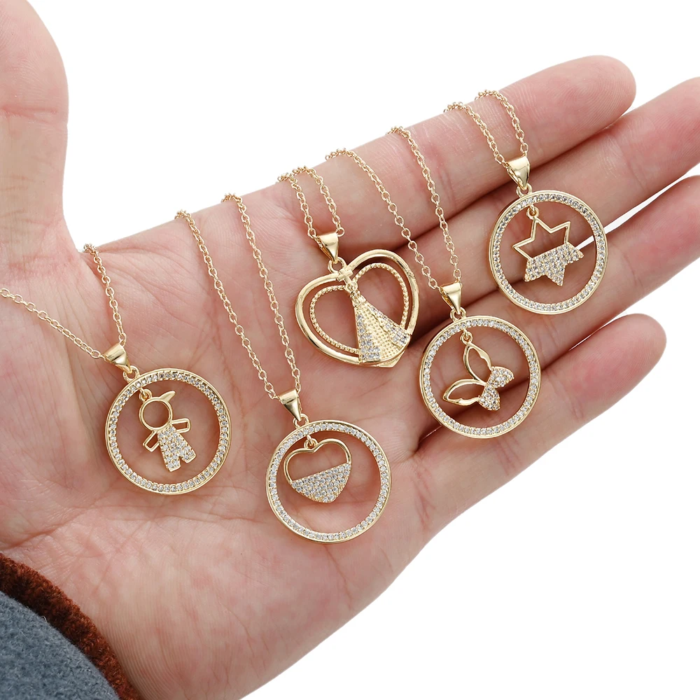 Название:Pipitree полые кубического циркония круглые амулеты женское ожерелье милая Золотая Звезда Сердце бабочка подвеска с молнией личное ожерелье