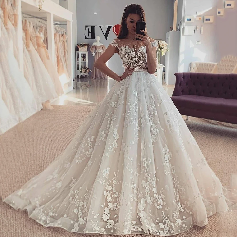 UZN шикарное бальное платье цвета слоновой кости с кружевом и бусинами, свадебные платья с круглым вырезом и рукавами-крылышками, свадебные платья BOHO с поясом с бусинами, vestido de novia 2022