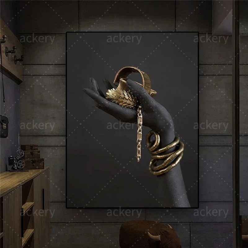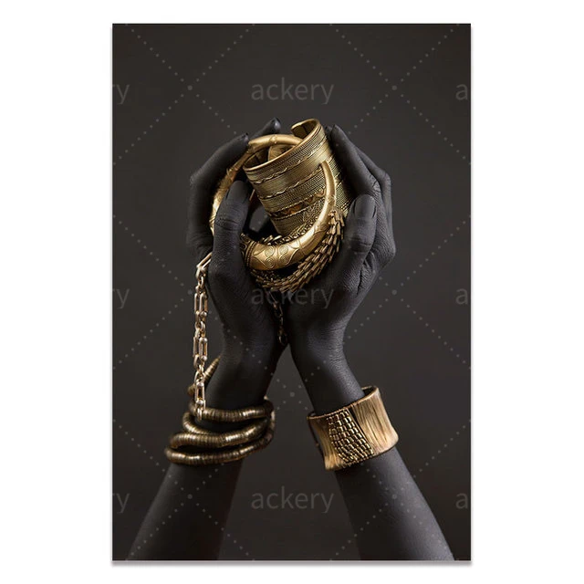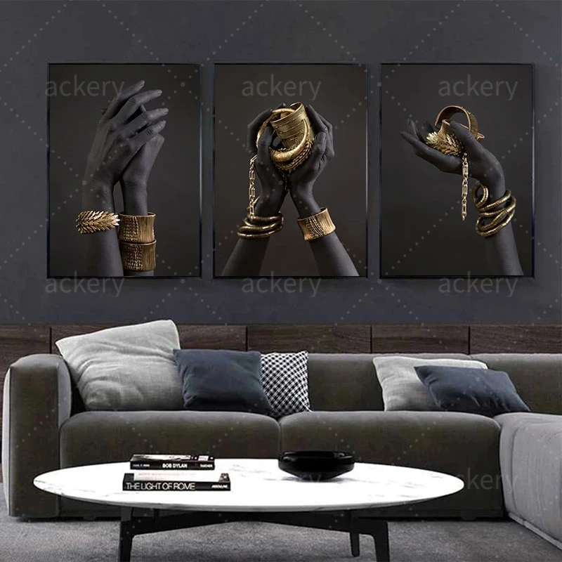 Черная ручная роспись на холсте в африканском стиле с золотыми ювелирными украшениями плакат и печать высокое качество живопись Настенный декор художественные украшения поделки