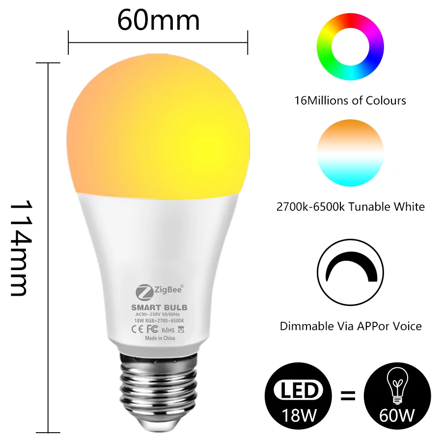 Страна: FR Emitting Color: Zigbee Led Bulb Color: 18W Number of LED Chip: 6 pcs Доставка: Standard Shipping 31.01.2022