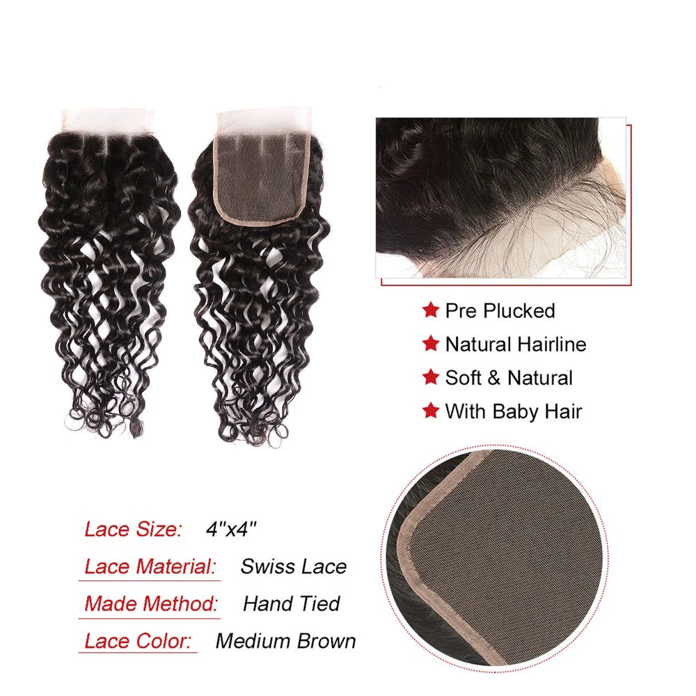 Бразильские волнистые человеческие волосы, 3 пряди с сеткой 4x4, ср...