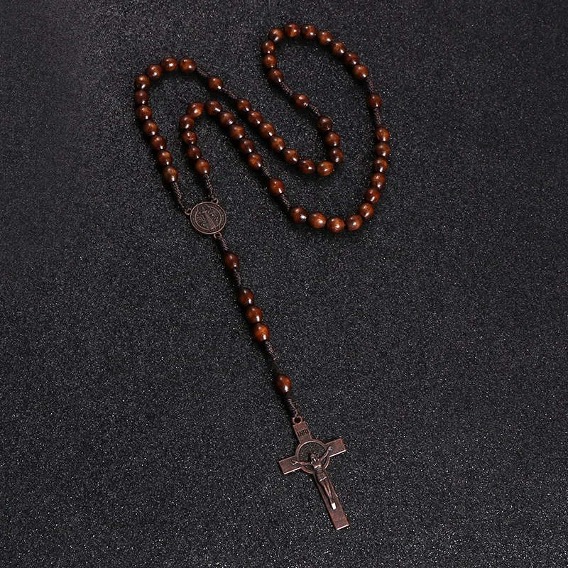 Деревянные бусины с Христом Иисусом, 8 мм, бусины с розам, подвеска в виде автомобиля, плетеная веревочная цепочка, ожерелье, религиозные православные молитвенные украшения