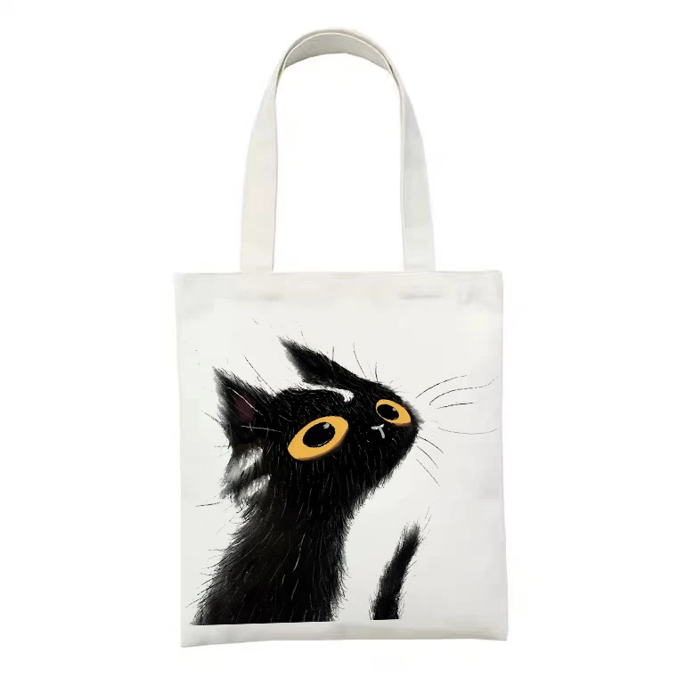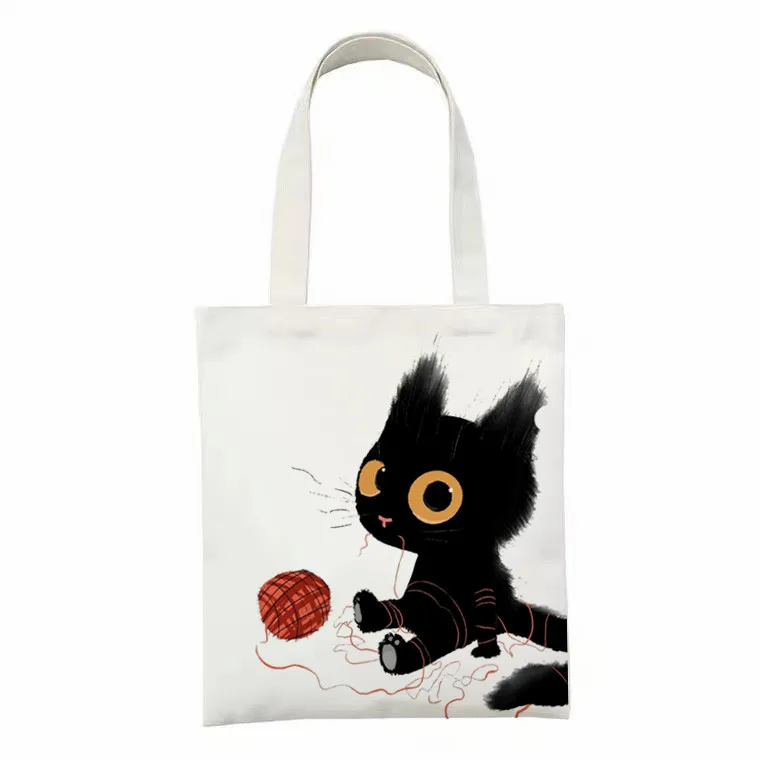 Сумка-тоут женская холщовая с принтом кошки, милая Экологически чистая Складная Сумочка-тоут для покупок, повседневный саквояж большой вместимости