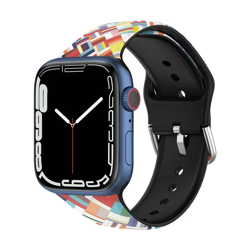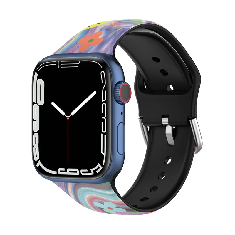 Ремешок силиконовый для часов серии 7 SE 6 5 4, мягкий силиконовый браслет с принтом для Apple IWatch Band 41 мм 45 мм 38 мм 42 мм 44 мм 40 мм