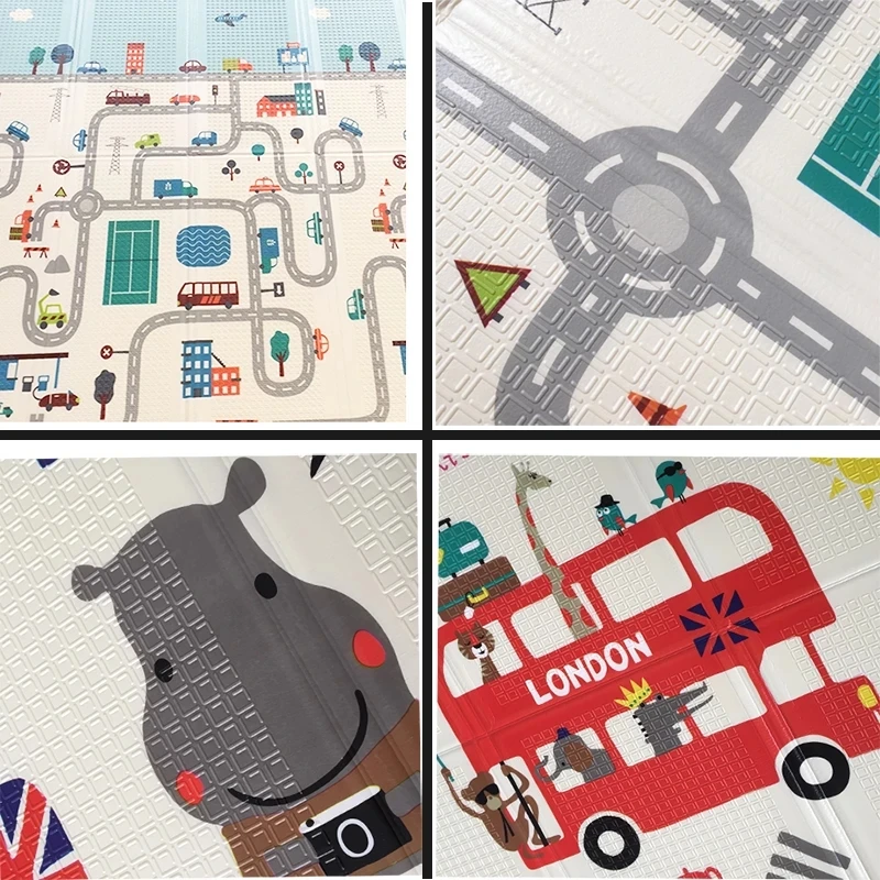 Гибкий и мягкийВодонепроницаемый и легко чиститсяМягкая поверхность пола для малышей и детей, чтобы играть от рождения до школы.Супер-легкий в складку коврик может быть упакован в компактный размер с сумкой для переноски, не занимает много места для хранения.Двусторонний дизайн с разными цветами и узорами удивит вас и подарит ребенку ощущение свежести, чтобы вызвать его любопытство.Изготовлен из материала XPE, без свинца, хрома, BPA и фталатов, безвреден для ребенка.Поверхность на 100% водостойкая и Легко протирается неизбежными брызгами сухой тканью. Никогда не беспокойтесь о пятнах или проблемах с уборкой.Двойной L текстурированный дизайн Противоскользящий помогает уменьшить скольжение и скольжение.Поставляется с рулем, вы можете взять везде, как хотите.