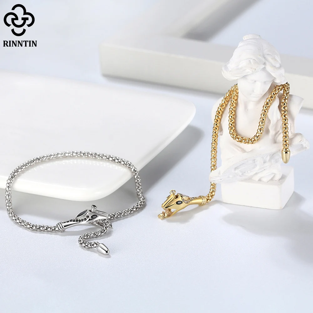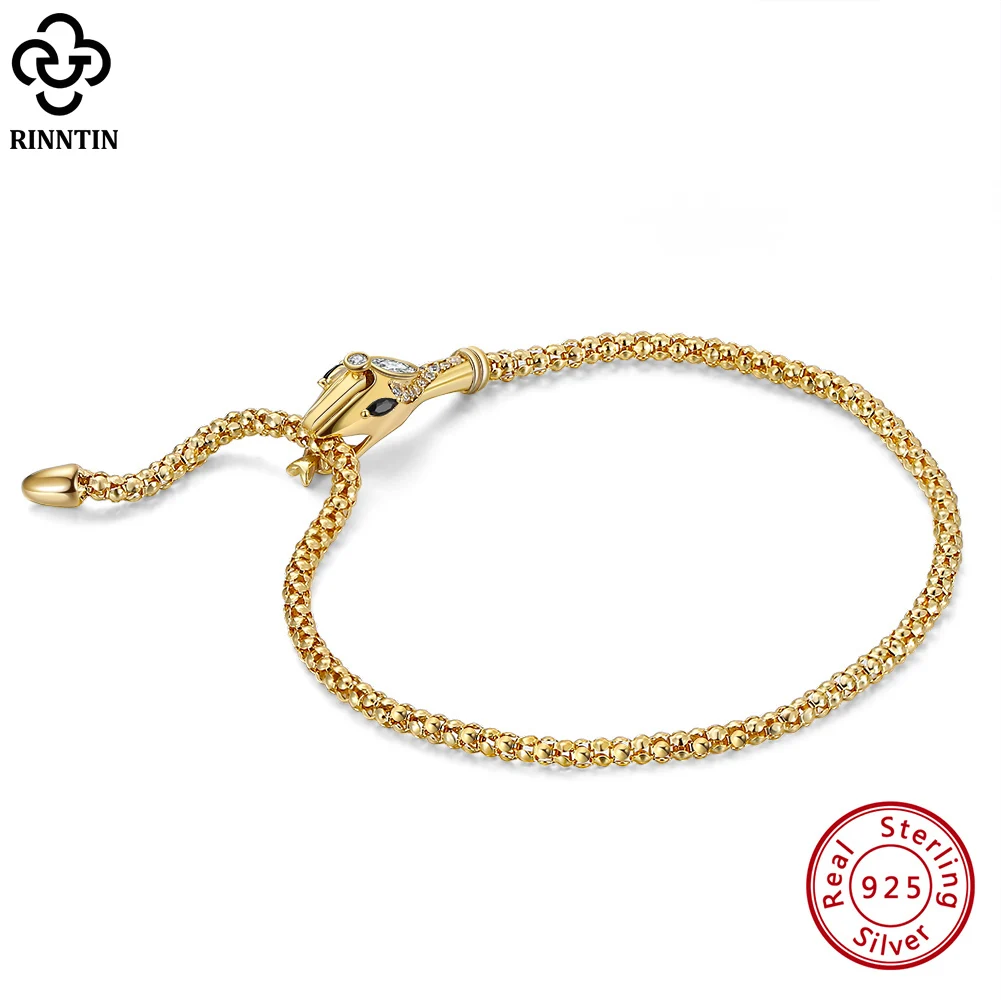 Rinntin, винтажный браслет-цепочка в готическом стиле из стерлингового серебра 925 пробы со змеиным дизайном для женщин и девочек, модный браслет в стиле панк, ювелирное изделие, подарок EQB14