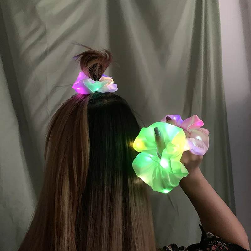 Яркие светящиеся атласные кольца для волос со светодиодной подсвети...