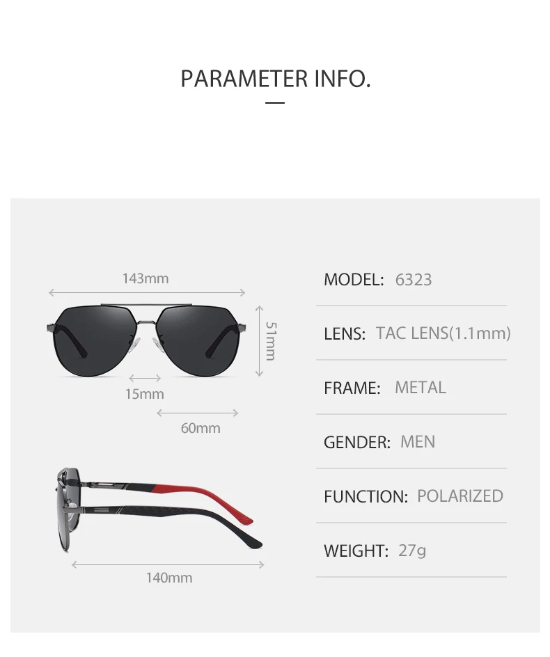 Мужские и женские квадратные поляризованные солнцезащитные очки LIO...