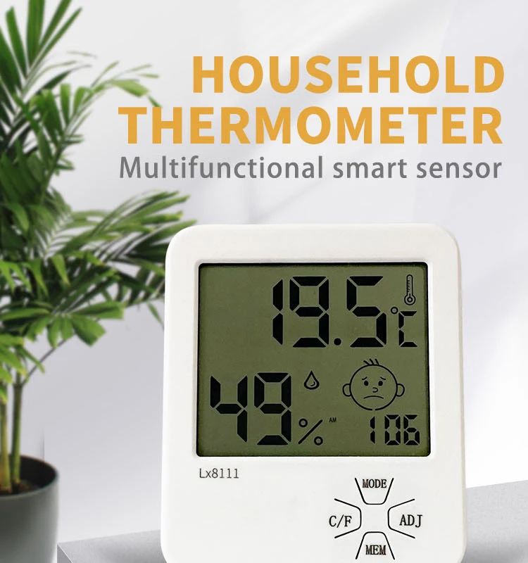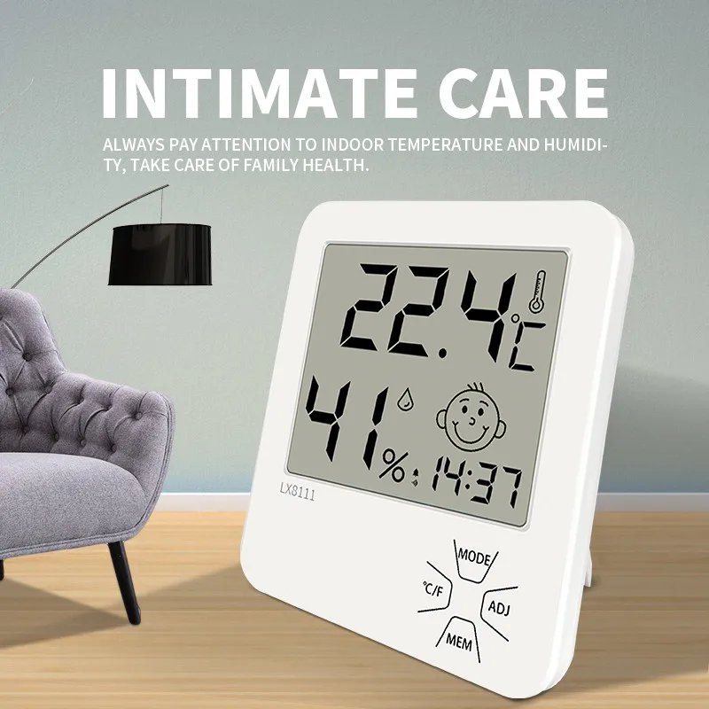 Цифровой термометр для дома, комнатный мини-гигрометр с отображением времени и будильником, маленький электронный измеритель влажности для улицы