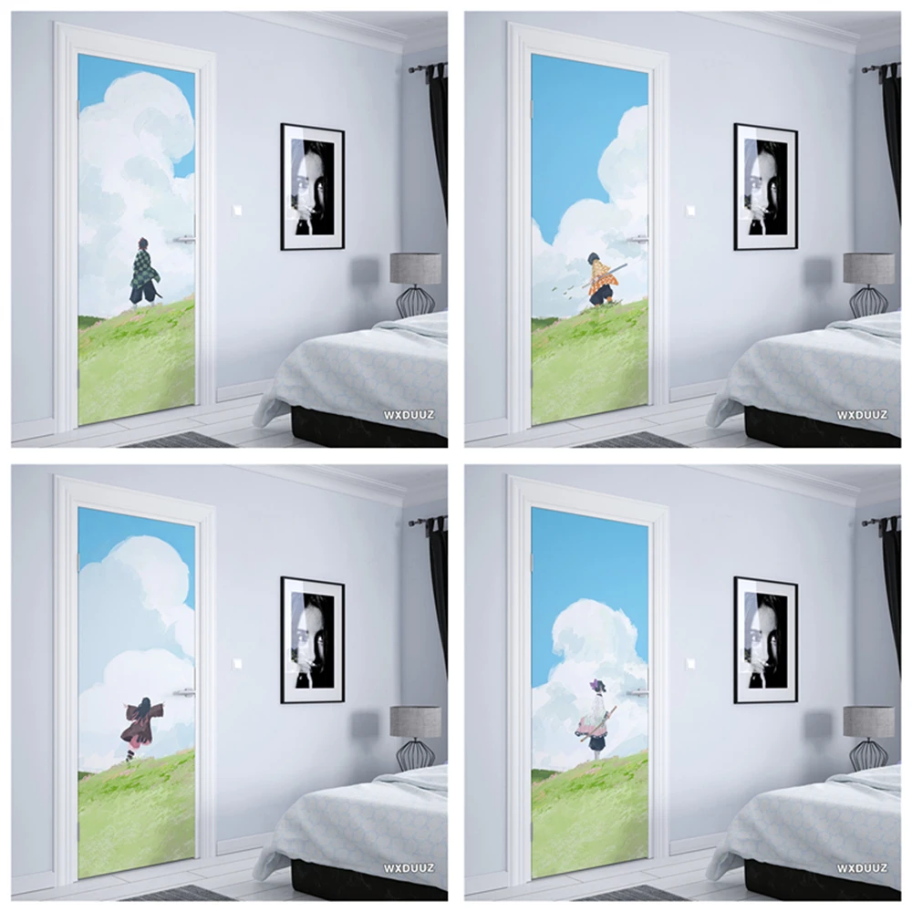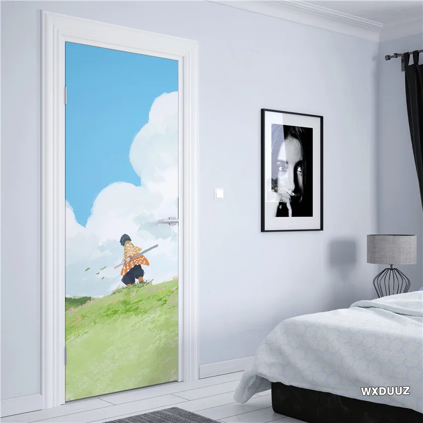 Декор на дверь HD, японское аниме, самоклеящаяся водостойкая наклей...