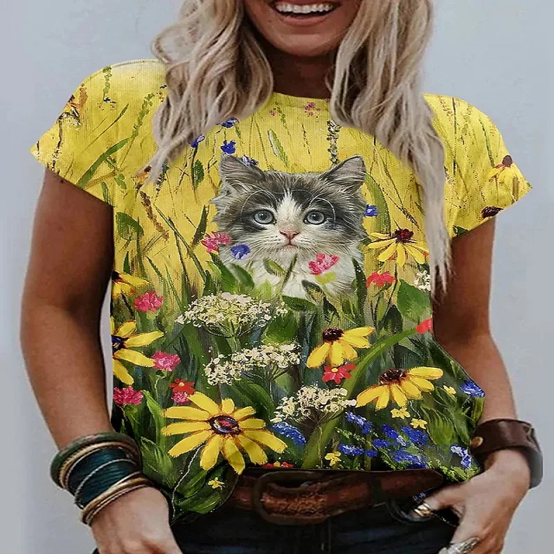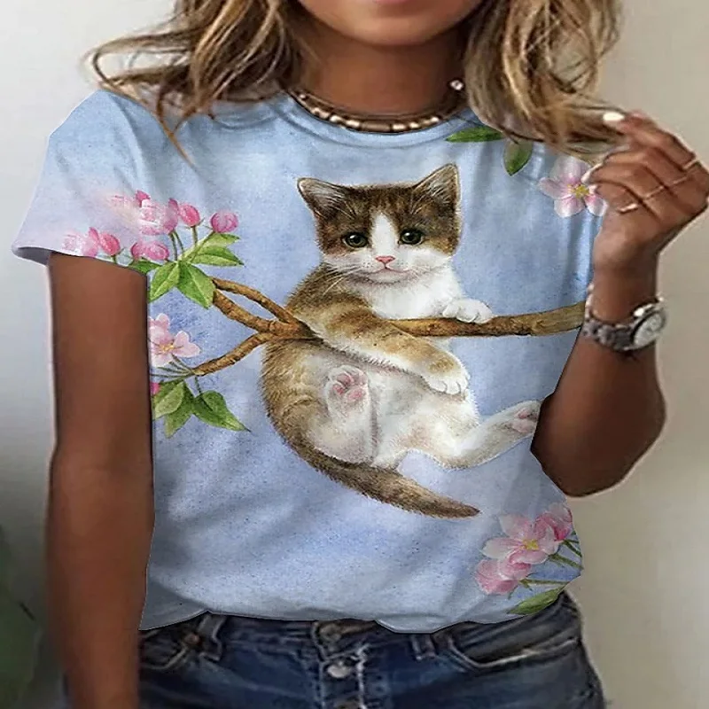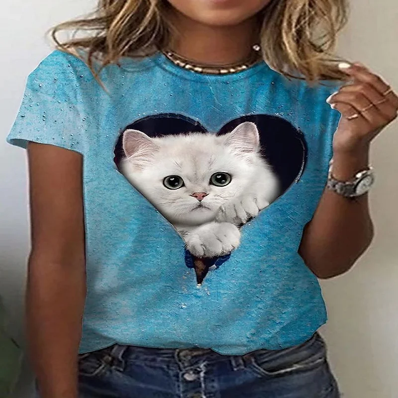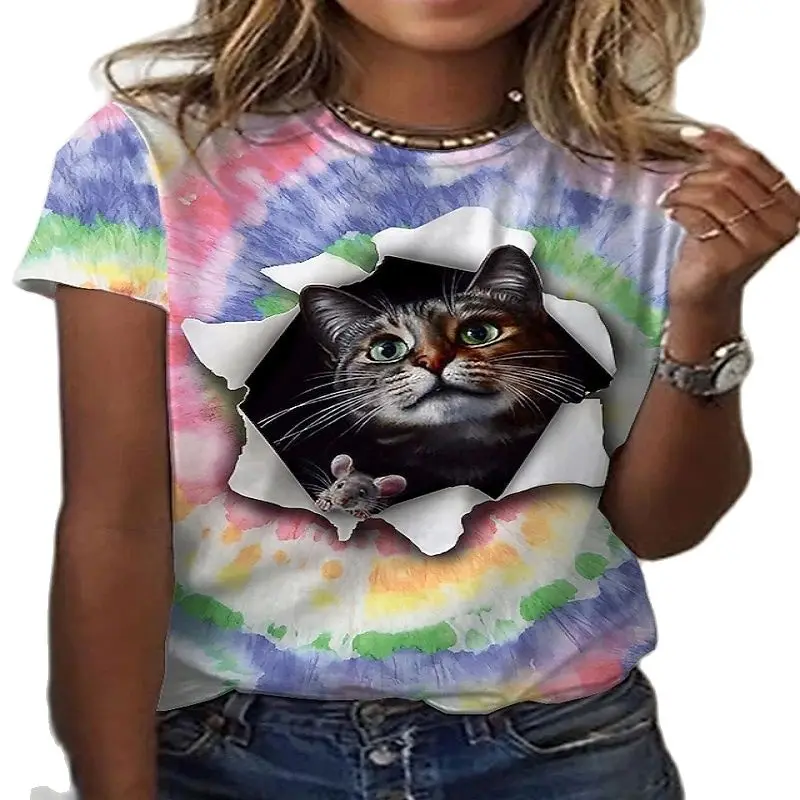 Футболка женская оверсайз с 3D принтом, модная повседневная одежда, цветная Милая рубашка с рисунком котенка