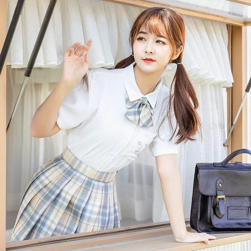 Летняя школьная униформа для девочек, милая плиссированная юбка, че...