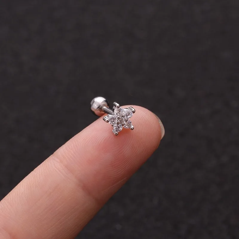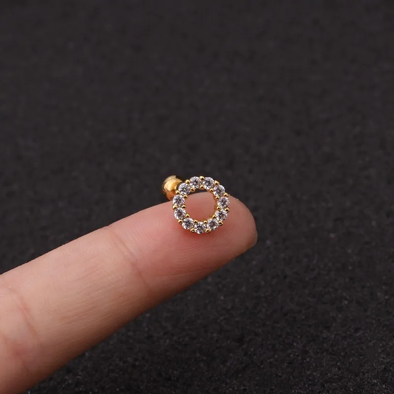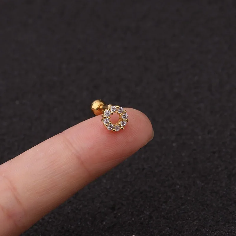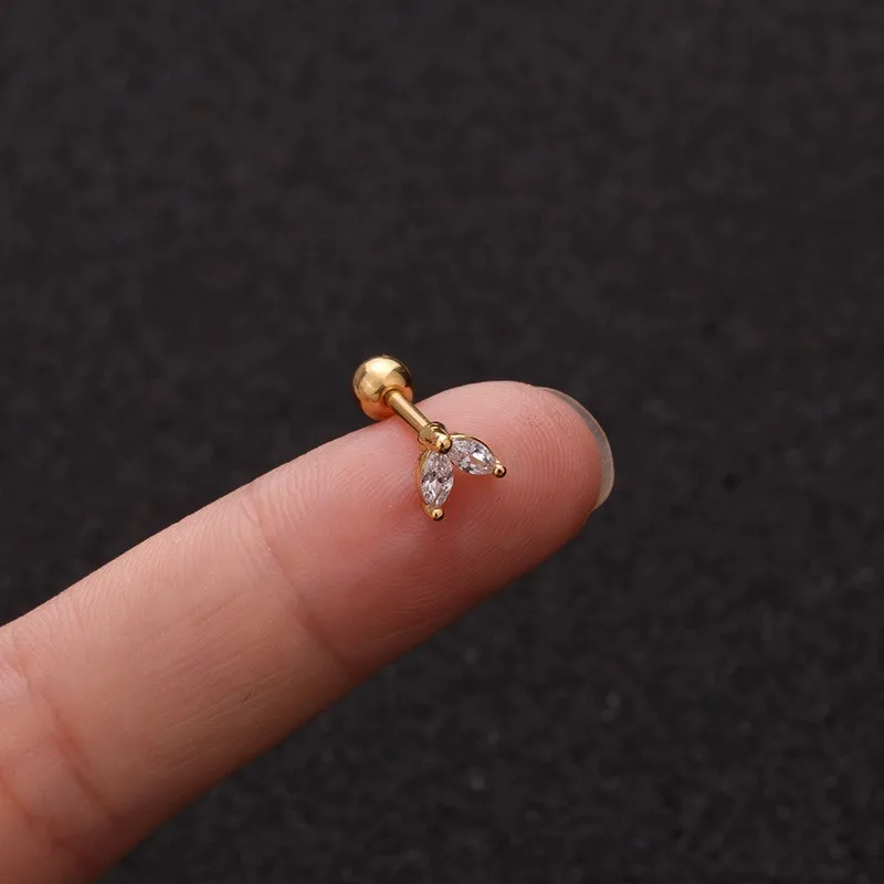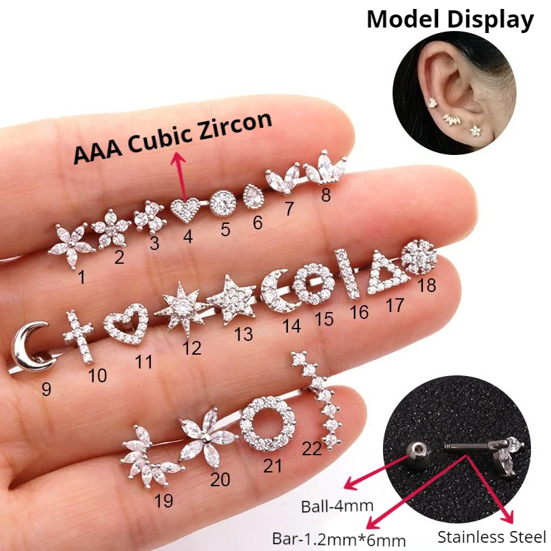 Серьги-гвоздики из нержавеющей стали AMC, 1 шт., кубический циркон, тонкий спиральный для хряща, сердце Луны, настоящий пирсинг, шпильки для подростков, манжеты для ушей
