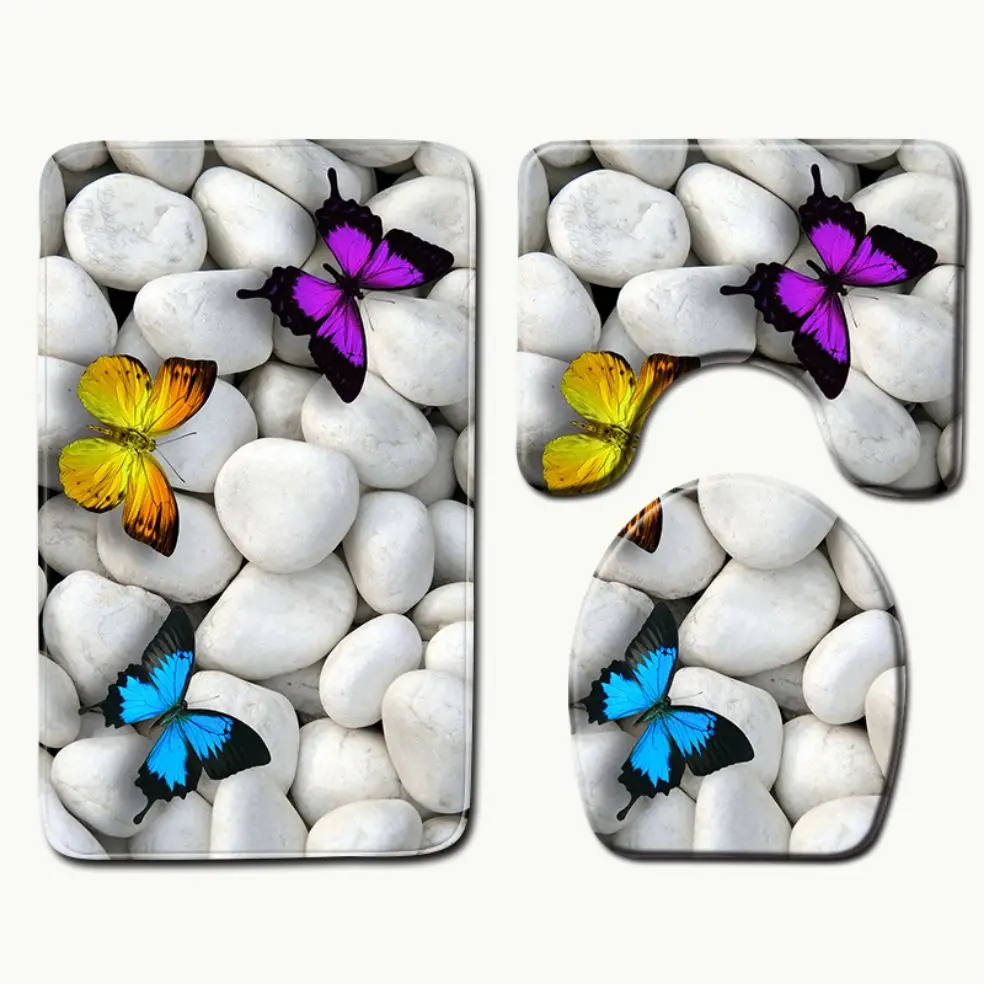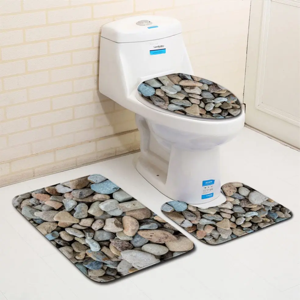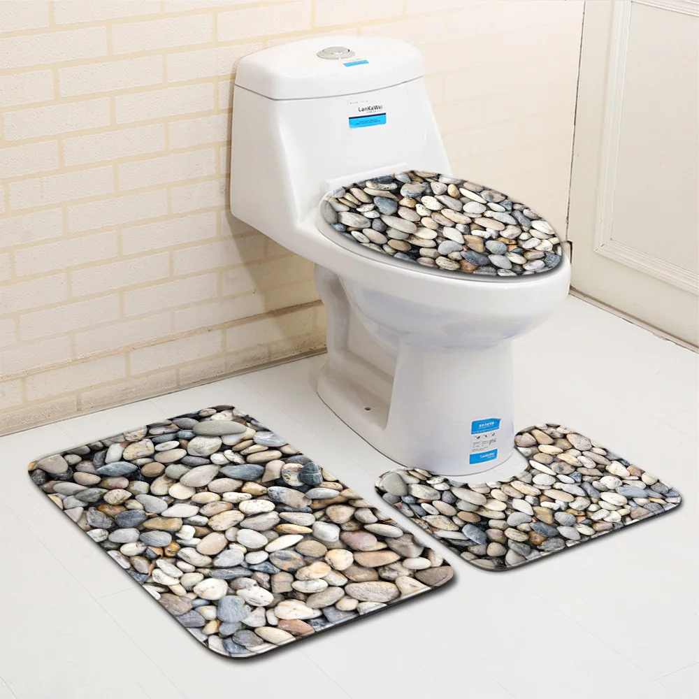Набор из 3 предметов нескользящий коврик-подставка для ванной комнаты + крышка для унитаза + коврик для ванной комнаты Набор аксессуаров для украшения ванной комнаты