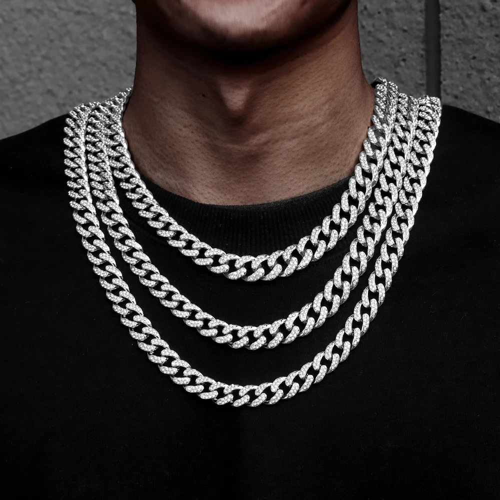 13 мм кубинское ожерелье со льдом, цепочка в стиле хип-хоп, ювелирное изделие, Мужская Золотая Серебряная цепочка, ожерелье, стразы, мужские ожерелья-репперы