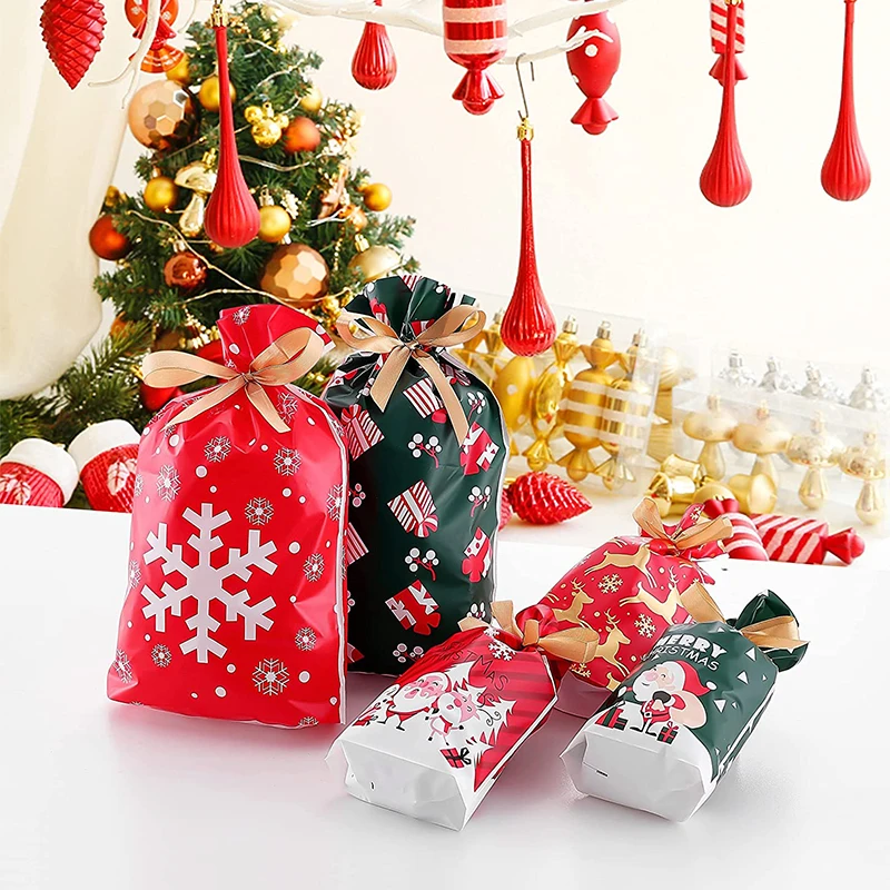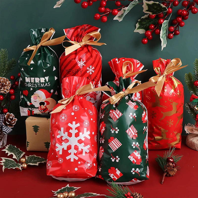 10 шт., пластиковые пакеты на шнурке для рождественской вечеринки