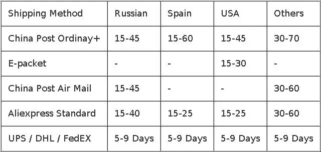 Для 80% стран, когда ваш заказ превышает 120 долларов США, мы отправляем его экспресс-почтой, такой как DHL