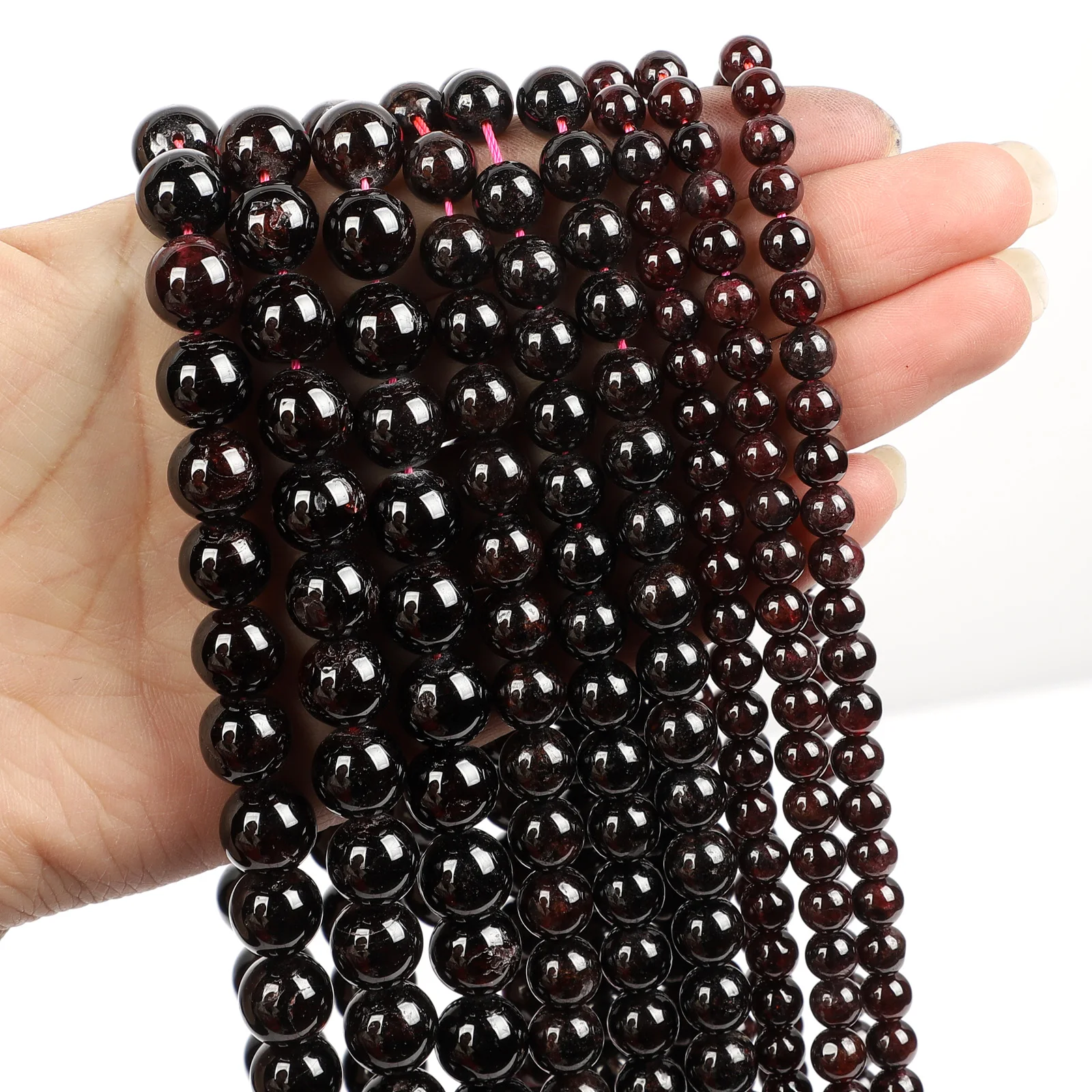 Бусины из натурального камня, круглые бусины-разделители с темно-красным гранатом для изготовления ювелирных изделий сделай сам, шармы, браслеты, ожерелья, аксессуары ручной работы
