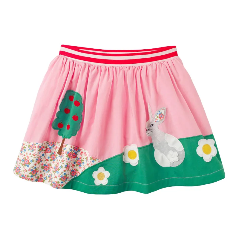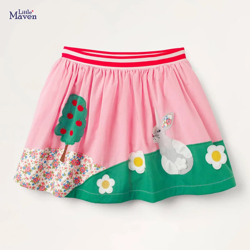 Little MavenЛетняя одежда для маленьких девочек; Тканые хлопковые мини-юбки с аппликацией в виде кролика; Милые школьные юбки для детей; От 2 до 7 лет