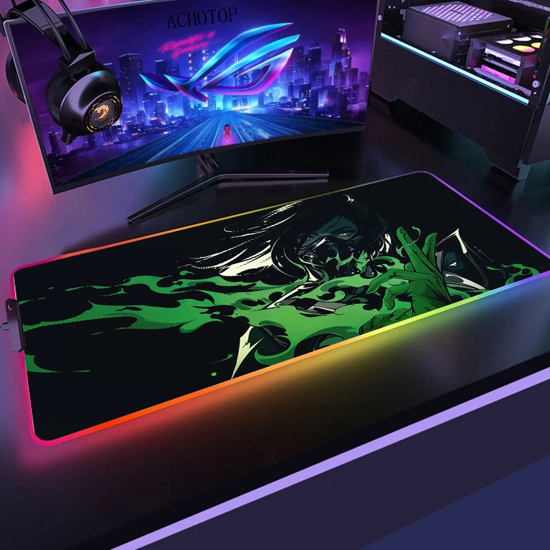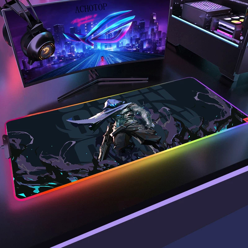 Большой игровой коврик для мыши Jhin RGB, коврик со светодиодный Но...
