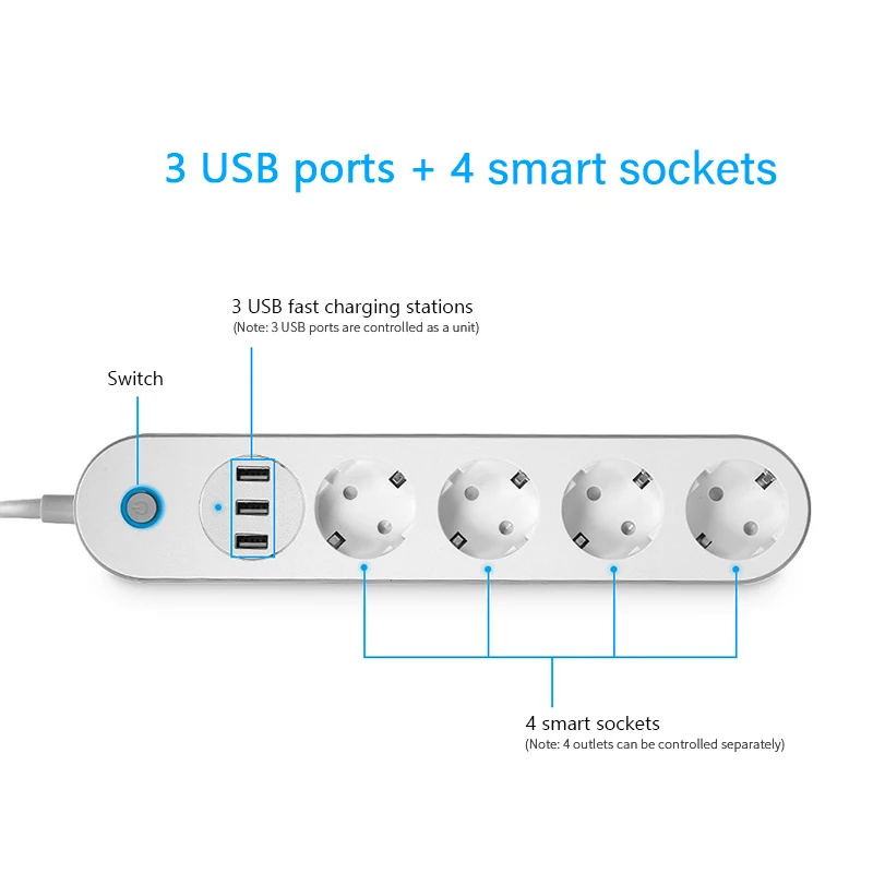 【 3 порта USB 4 разъема 】 розетки контролируются независимо, а порты USB используются как