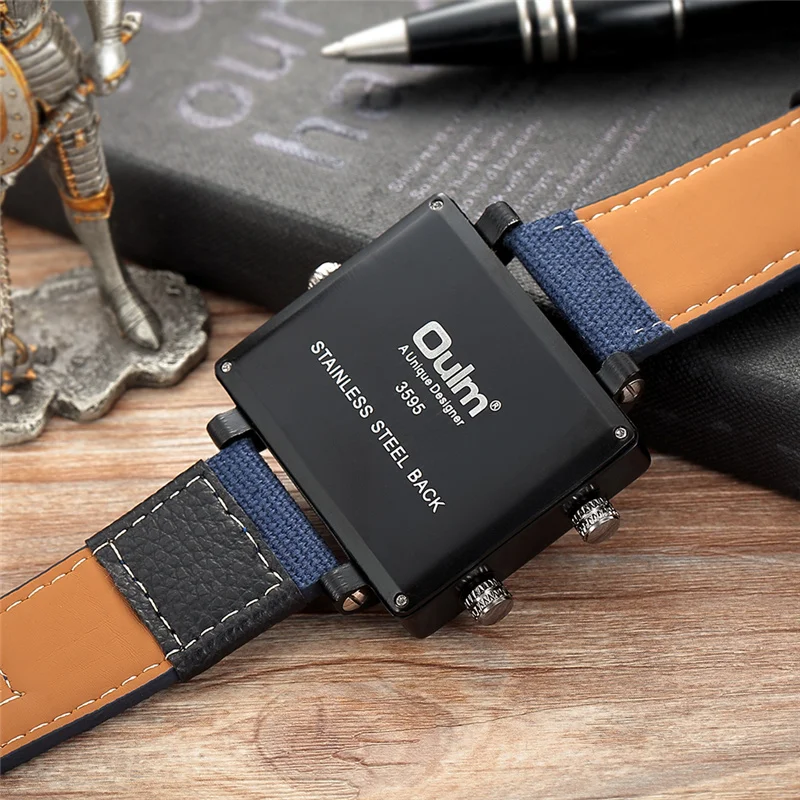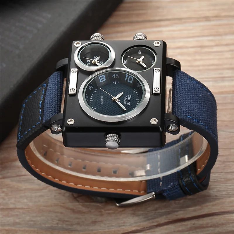 Oulm повседневные тканевые Мужские квадратные часы, мужские роскошные брендовые наручные часы с 3 циферблатами, прямоугольные кварцевые часы высшего дизайна