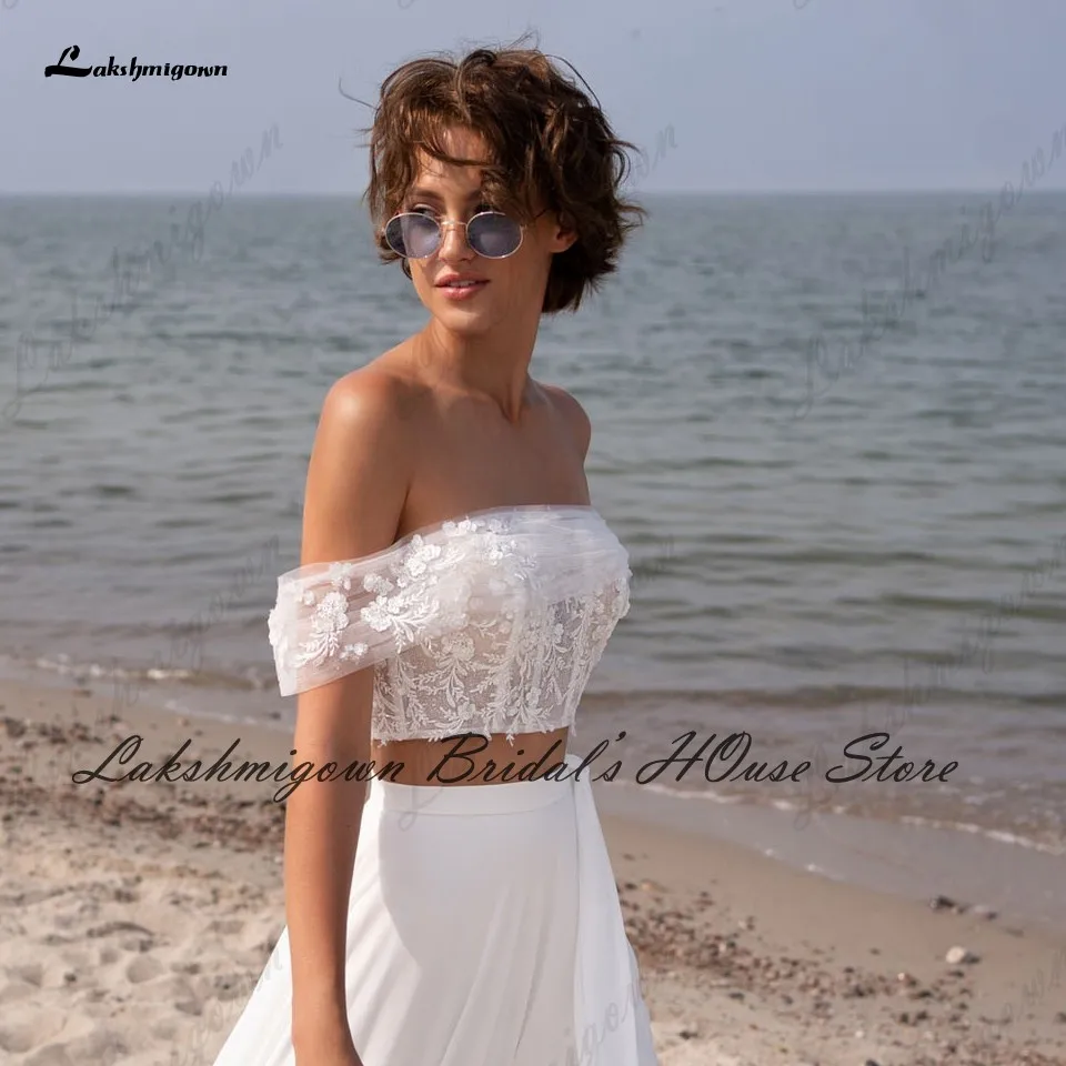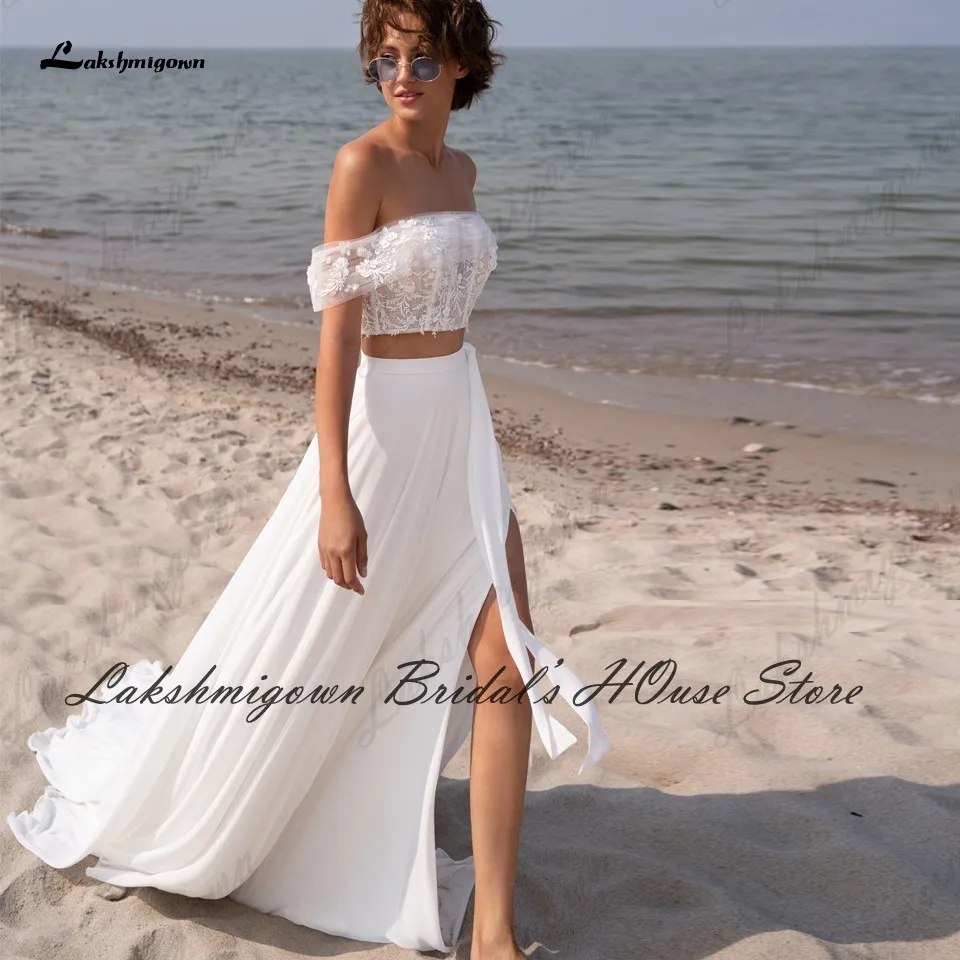 Lakshmigown винтажное свадебное платье в стиле бохо из 2 частей 2022 сексуальное свадебное шифоновое длинное пляжное свадебное платье es кружевной лиф