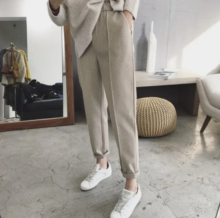 2021 зимние плотные узкие брюки женские теплые шерстяные свободные ...