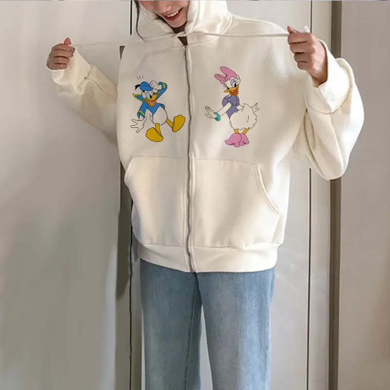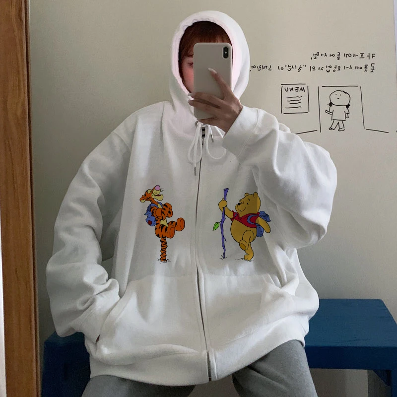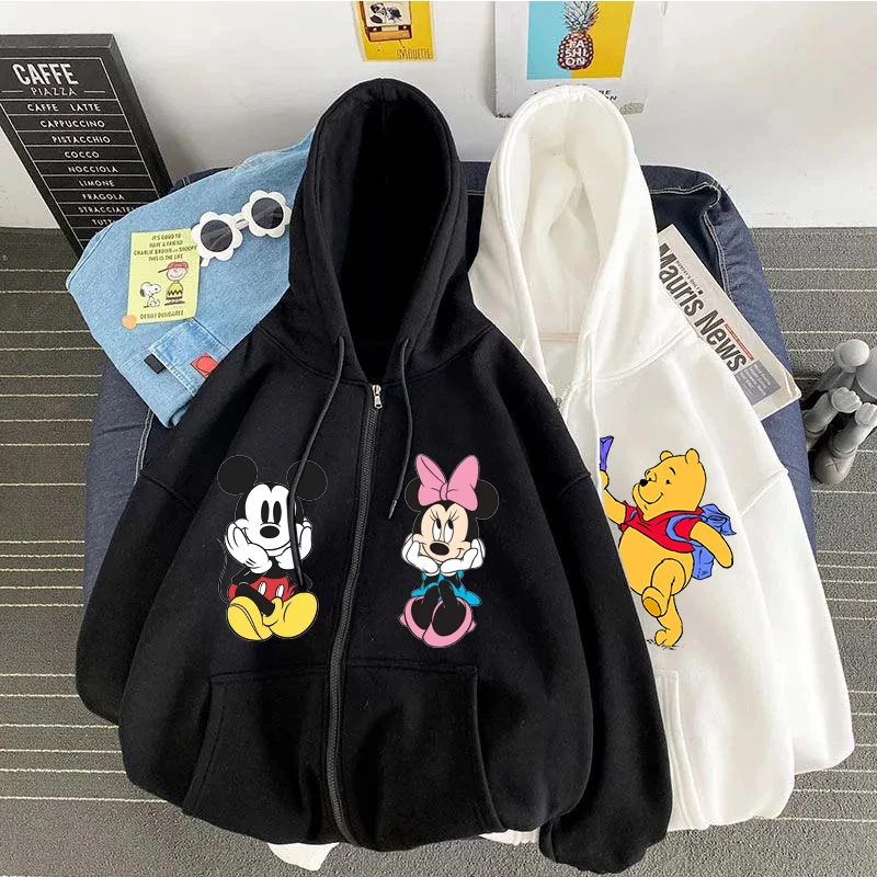 Милые толстовки на молнии с изображением девушек, семьи Диснея, Микки Маус, Дональд Дак, Стич, Винни-Пух, тигр, король льва, олень, Бэмби, пальто с принтом