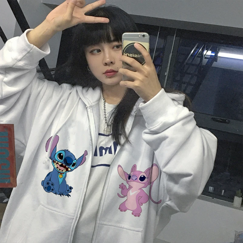 Осенне-зимние белые толстовки с капюшоном в стиле Диснея Стич Охана...